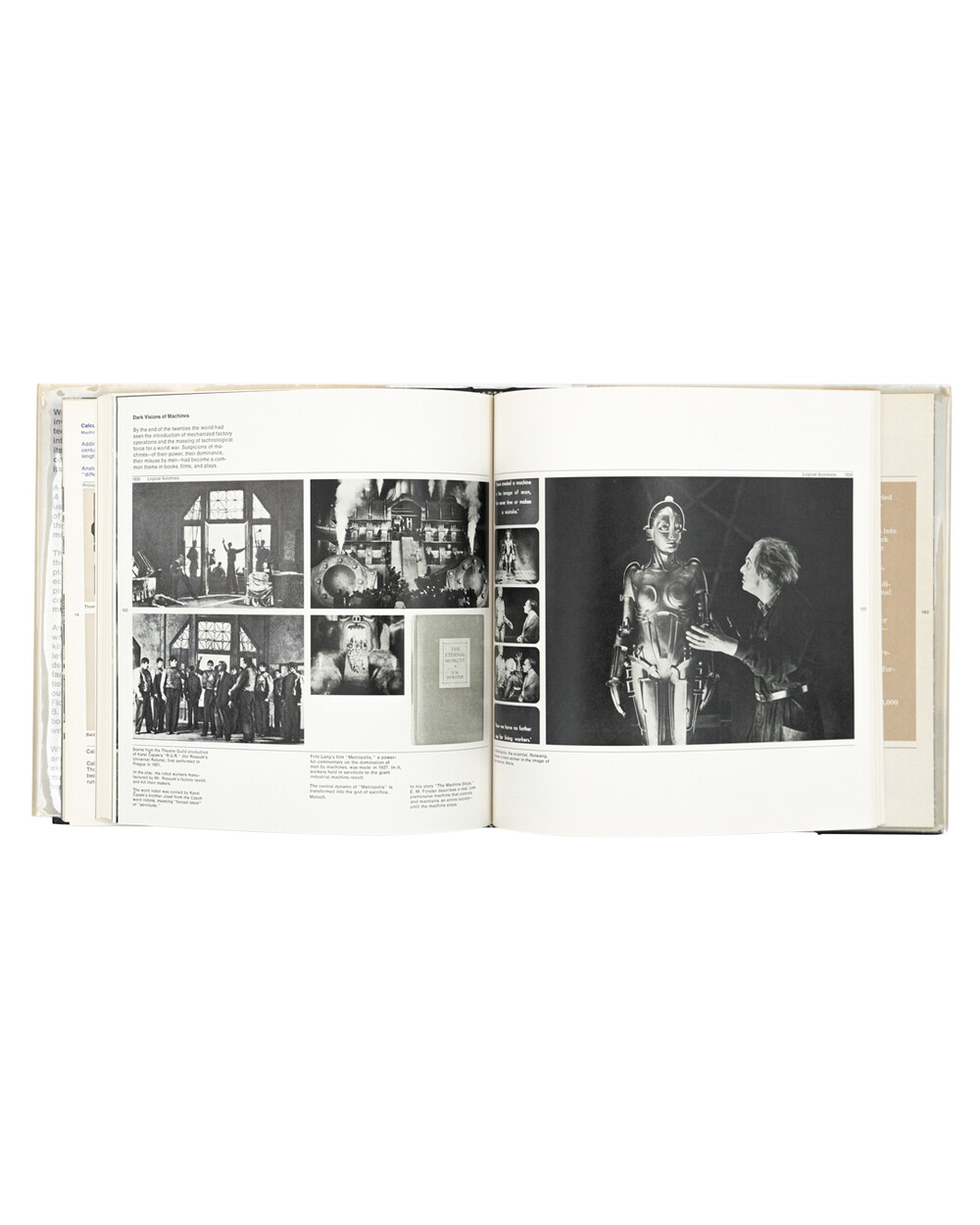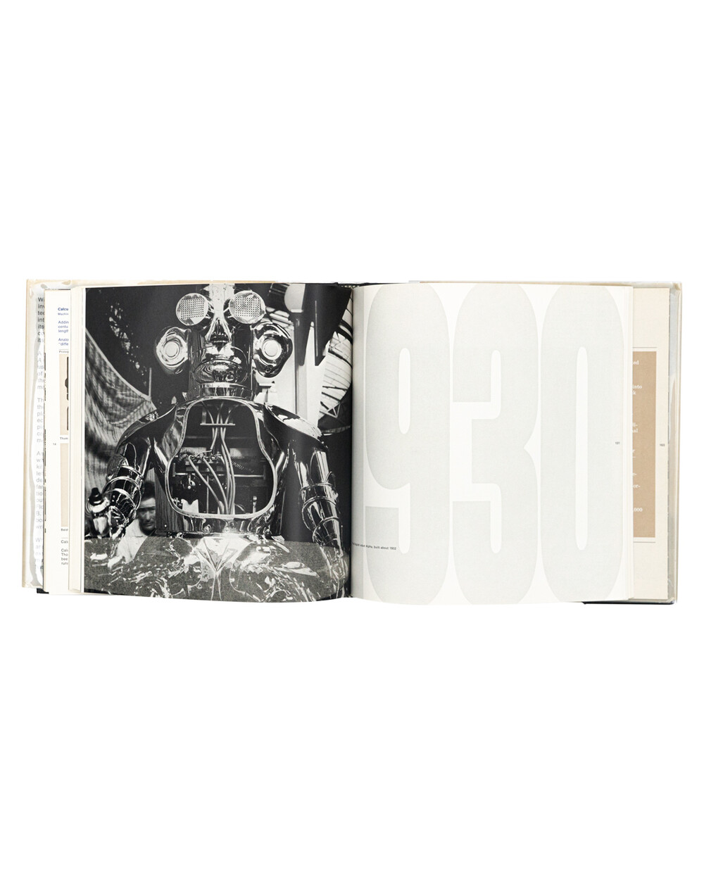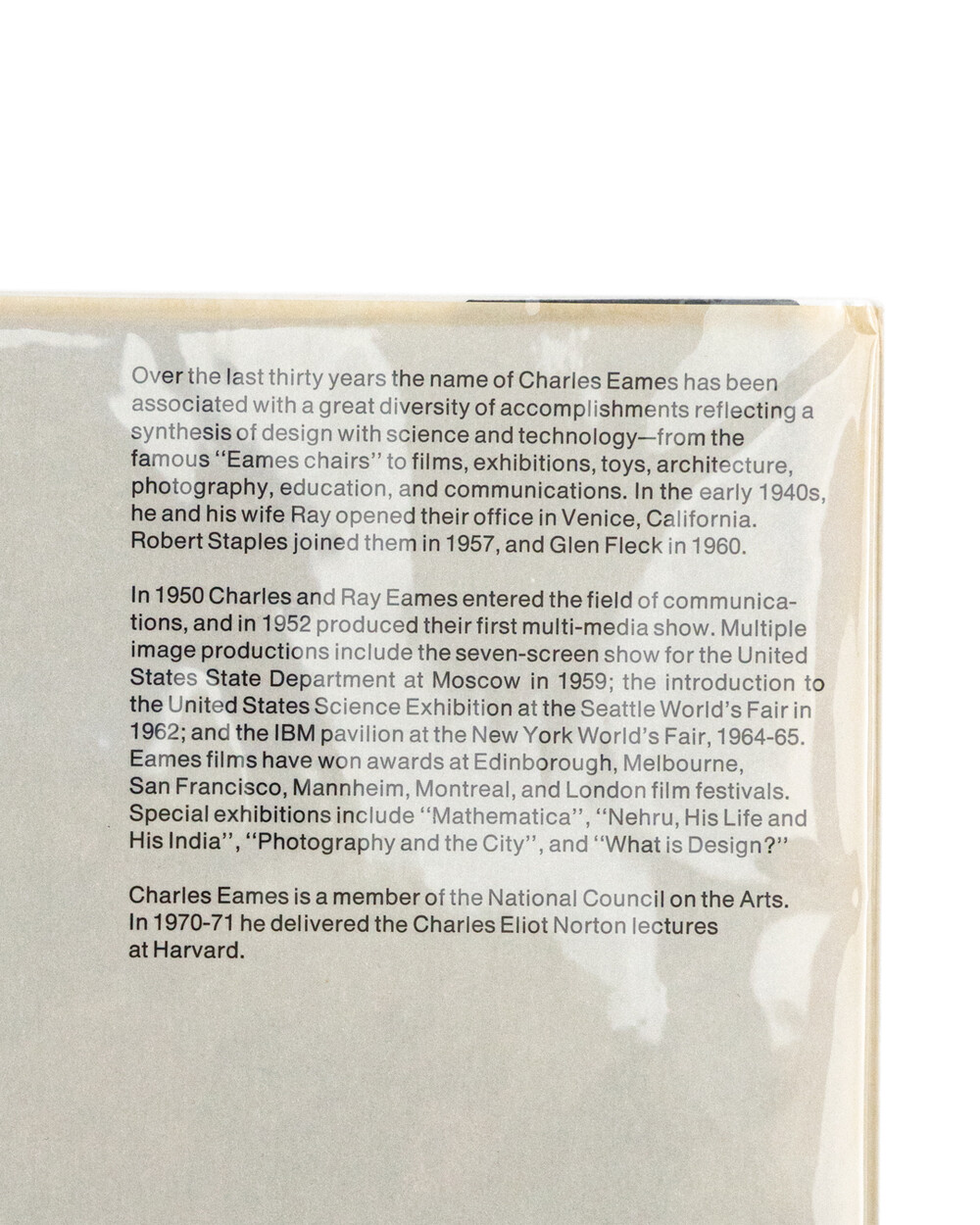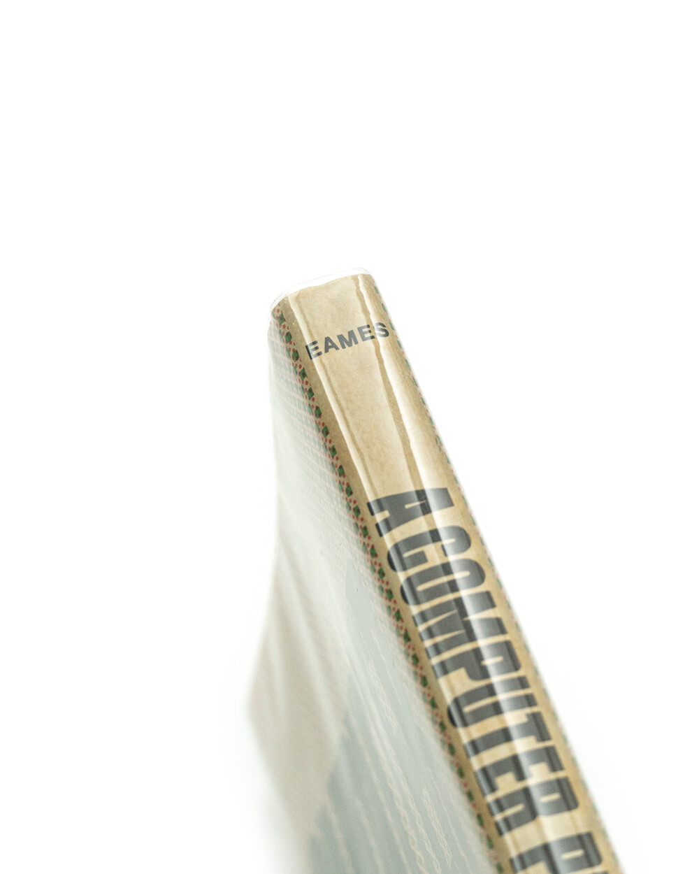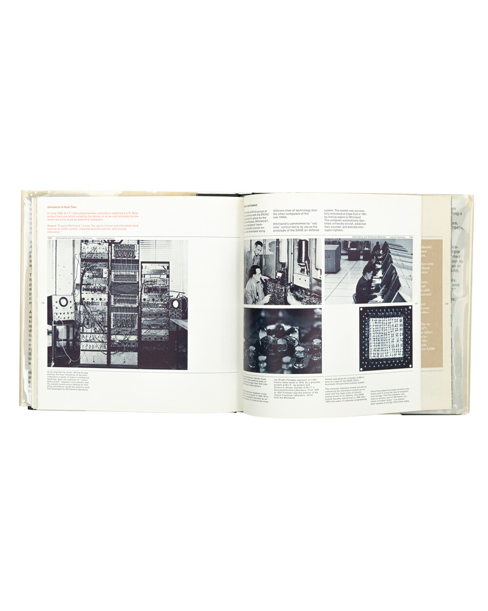 'A Computer Perspective' 은 1971년 IBM과 Eames Office가 공동 작업하여 만든 전시회로서 이 책은 전시 도록입니다. 전시회는 1890년부터 1940년까지의 빈티지하고 현대적인 기계, 컴퓨터 공예품, 텍스트, 사진 등 다양한 요소들을 콜라주하여 제작된 여섯 개의 역사 섹션, AV Rack이라고 불리는 다중 스크린 슬라이드 쇼, "Twenty Questions"라는 대화형 컴퓨터 게임 등 컴퓨터를 주제로 다양하고 매력적인 시대를 앞서간 전시 형태를 선보였습니다. IBM 기업 전시 센터에서 열린 이 전시는 매우 성공적이었고 1975년까지 4년여에 걸쳐 지속되었으며 책이 출판되기 이전에는 관련 영화 2편이 만들어졌습니다.
