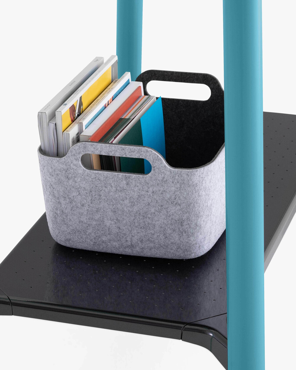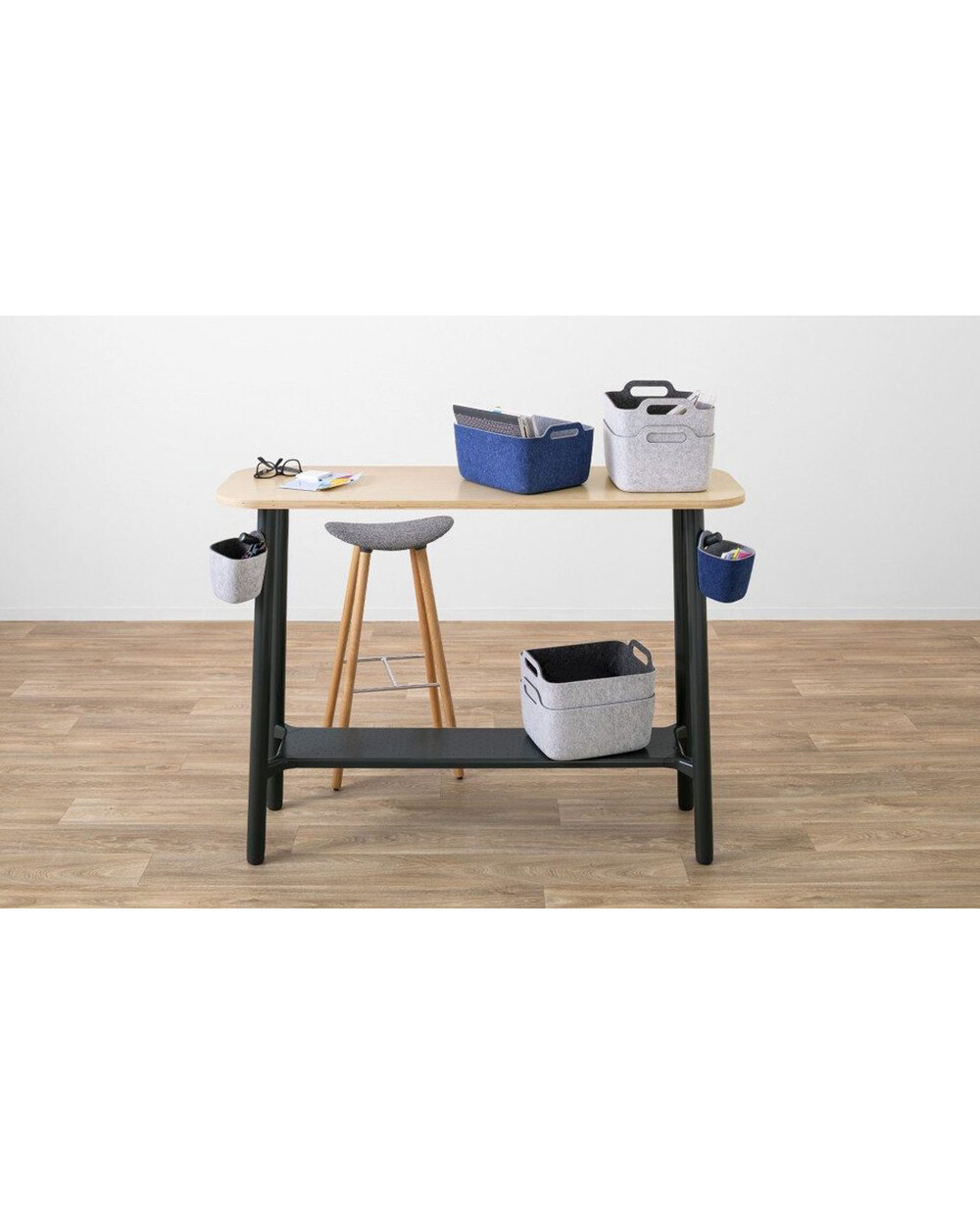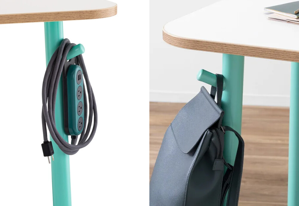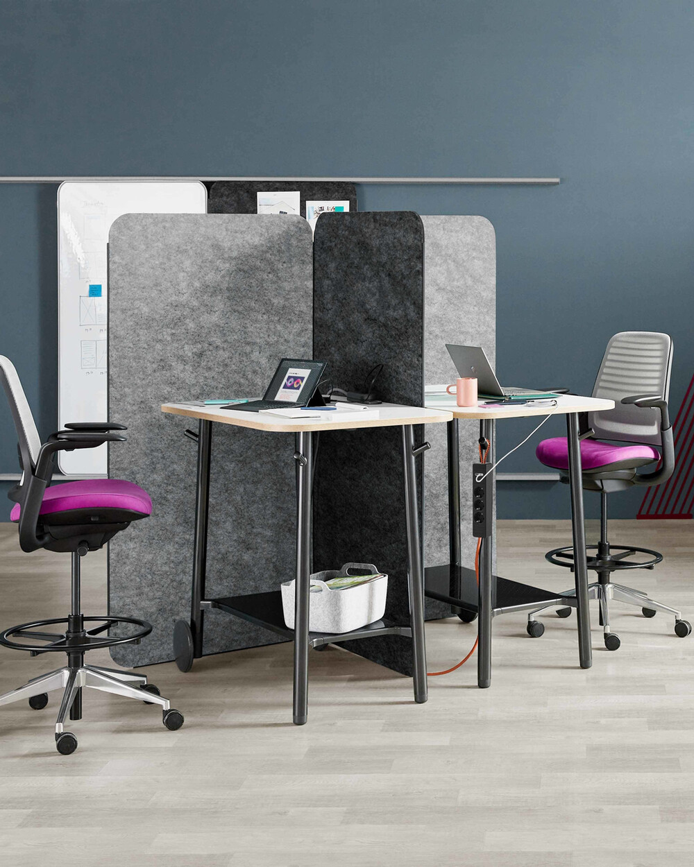 혁신적인 사무용 가구를 만드는 스틸케이스의 플렉스 컬렉션 입식 테이블입니다. 이 테이블의 특징적인 4가지 요소들은 잘 다듬어진 모서리의 나무 상판, 편리함을 더하는 후크가 달린 다리, 쉽게 이동이 가능한 바퀴, 다양한 용도로 사용 가능한 발판이 있습니다. 후크를 통해 멀티탭 및 개인 물품을 걸 수 있으며 하단부의 발판은 서있거나 의자에 앉았을 때 자세를 보조하거나 개인 휴지통 및 스토리지를 올려놓을 수 있습니다. 다재다능한 이 입식 테이블은 개인 작업실부터 공동 작업까지 다양한 작업 활동에 사용할 수 있습니다.