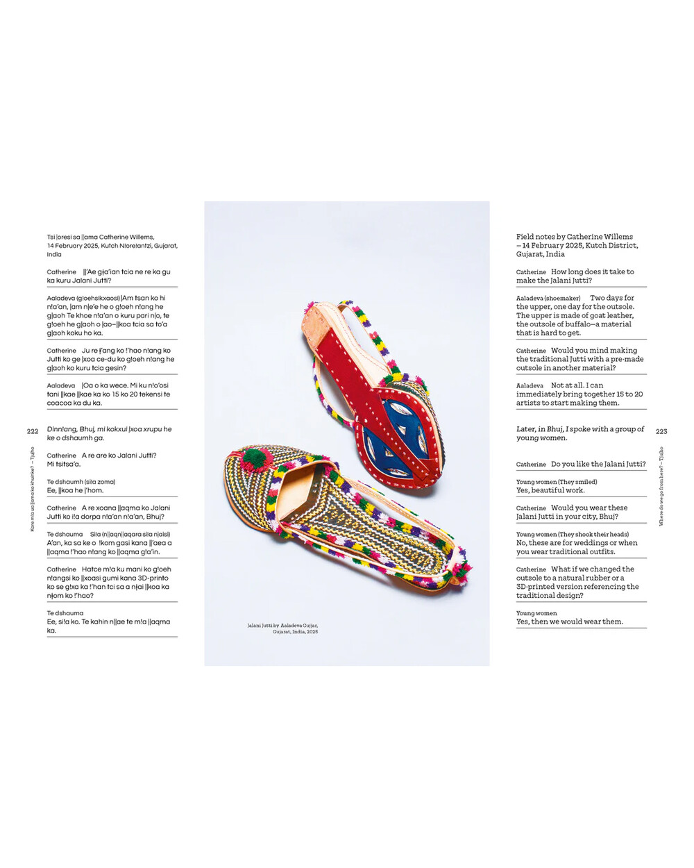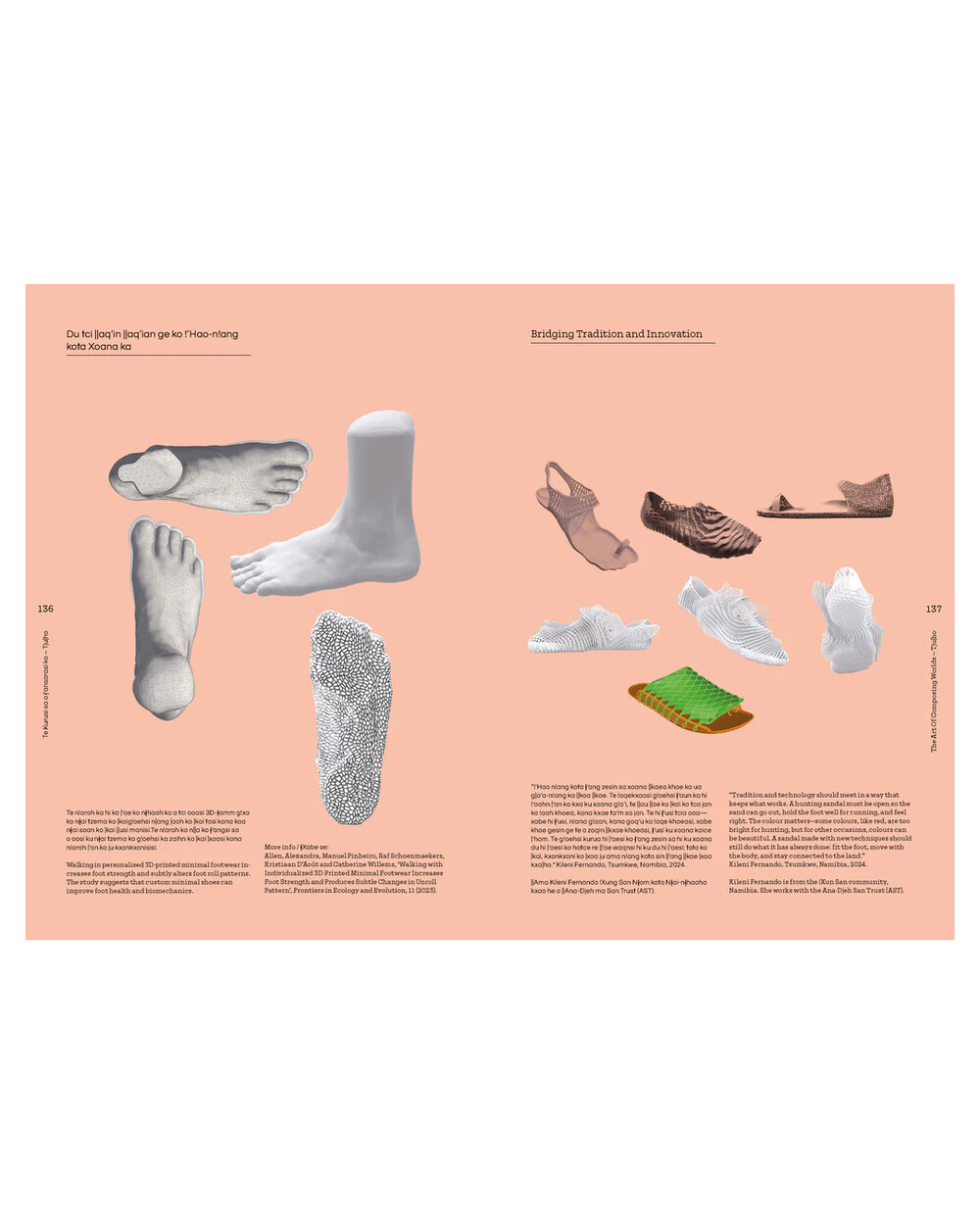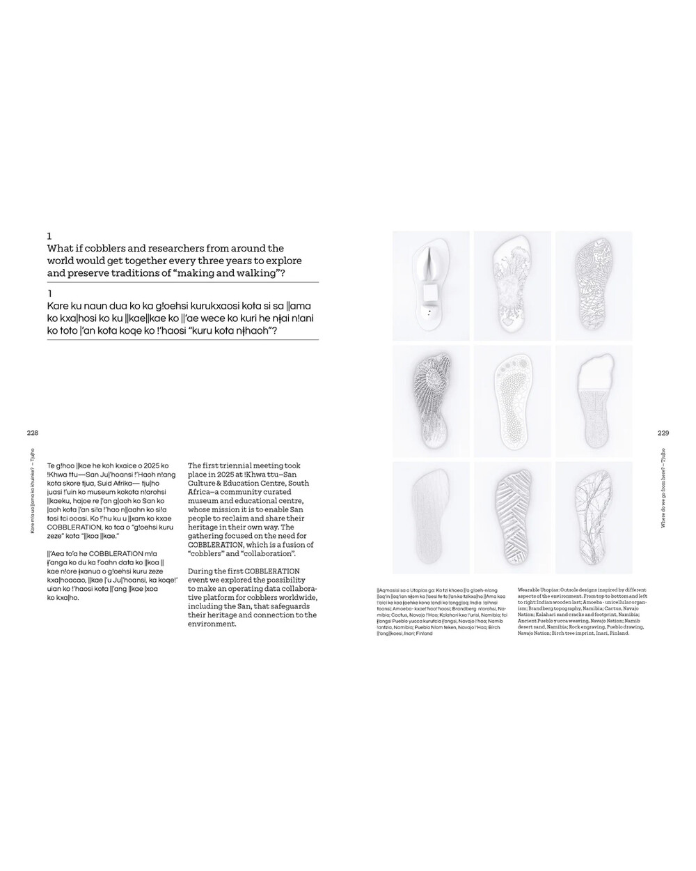 사려 깊은 디자인이란 무엇일까요? 이 책은 특정한 장소와 커뮤니티가 어떻게 지속 가능한 '만들기'와 '걷기'의 방식을 형성하는지 탐구하는 도서입니다. 아프리카 나미비아 노마(Nhoma) 지역의 전통적인 수렵용 샌들인 'N!ang N|osi'를 재창조하는 과정을 중심으로 전개됩니다.