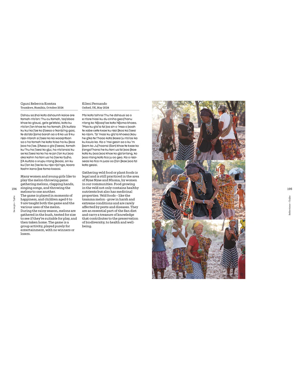 이중 언어 출판 및 원주민 협업: 나미비아 쥬호안(Ju|'hoansi) 커뮤니티와의 긴밀한 협업을 통해 제작되었으며, 영문과 쥬호안어(Ju|'hoan)가 함께 병기된 이중 언어 출판물로서 원주민의 인식론적 권위를 존중하고 강화합니다.