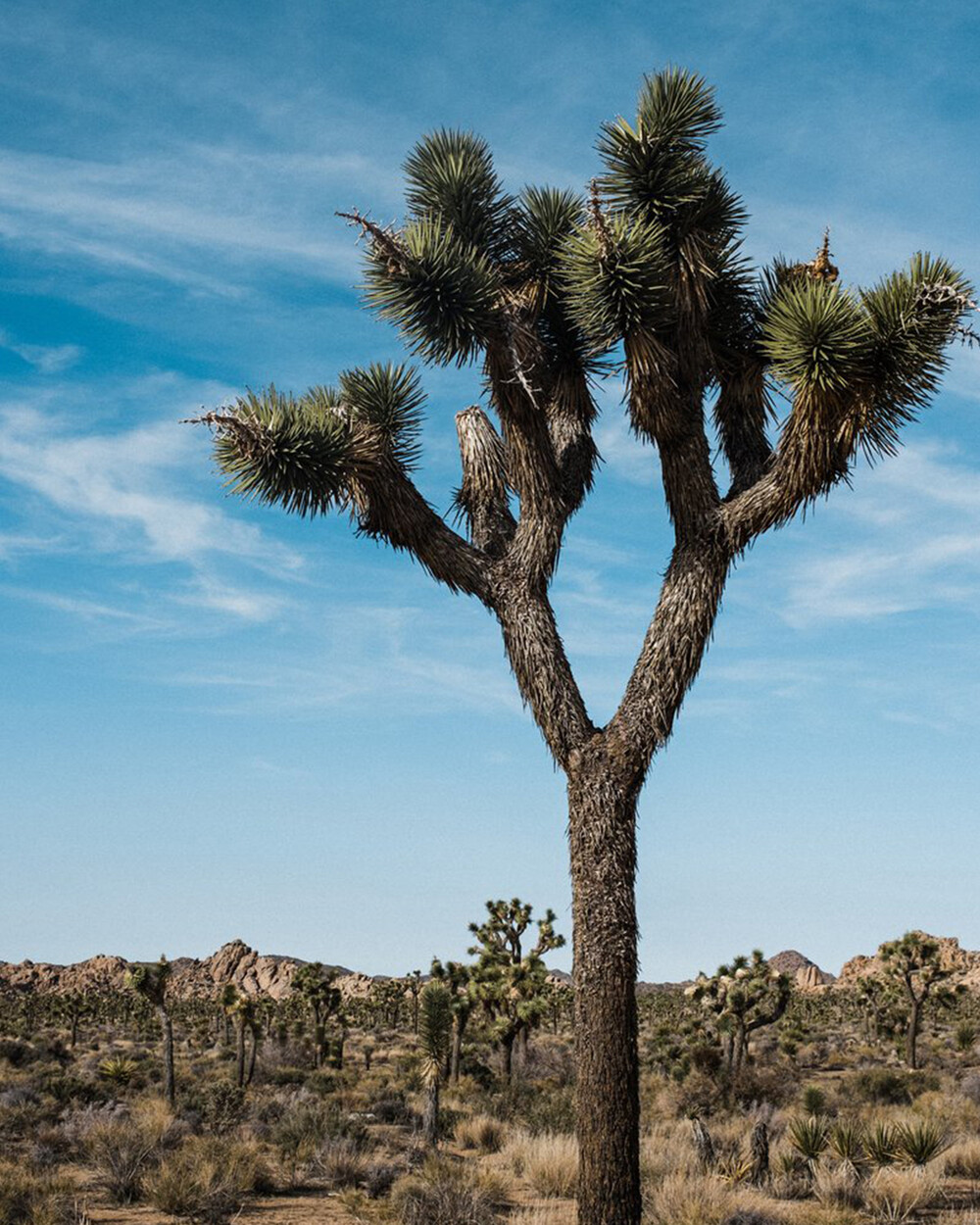 미국 서부 조슈아트리(Western Joshua Tree)는 아스파라거스과(Asparagaceae) 아가베아과(Agavoideae)에 속하는 상록 다육식물입니다. 두껍고 수분을 저장하는 다육 조직을 지닌 40여 종 이상의 유카(Yucca) 가운데서도, 조슈아트리는 가장 웅장하고 독보적인 존재로 꼽힙니다. 학명 Yucca brevifolia는 유카 팜(Yucca Palm), 트리 유카(Tree Yucca), 팜트리 유카(Palm Tree Yucca) 등 여러 이름으로 불리며, 스페인어권에서는 날카로운 잎 모양을 빗대어 이스오테 데 데시에르토(Izote de Desierto)’—‘사막의 대거(단검)라고 부릅니다. 그럼에도 이 기이하면서도 경이로운 식물을 가장 널리 알린 이름은 단연 조슈아트리(Joshua Tree)입니다. 19세기 중엽, 서부 개척길에 오른 모르몬 개척자들이 이 나무의 기묘한 실루엣에서 성경 속 예언자 조슈아(여호수아)가 팔을 뻗어 서쪽을 가리키는 모습을 떠올린 데서 유래했다는 설이 전해집니다.