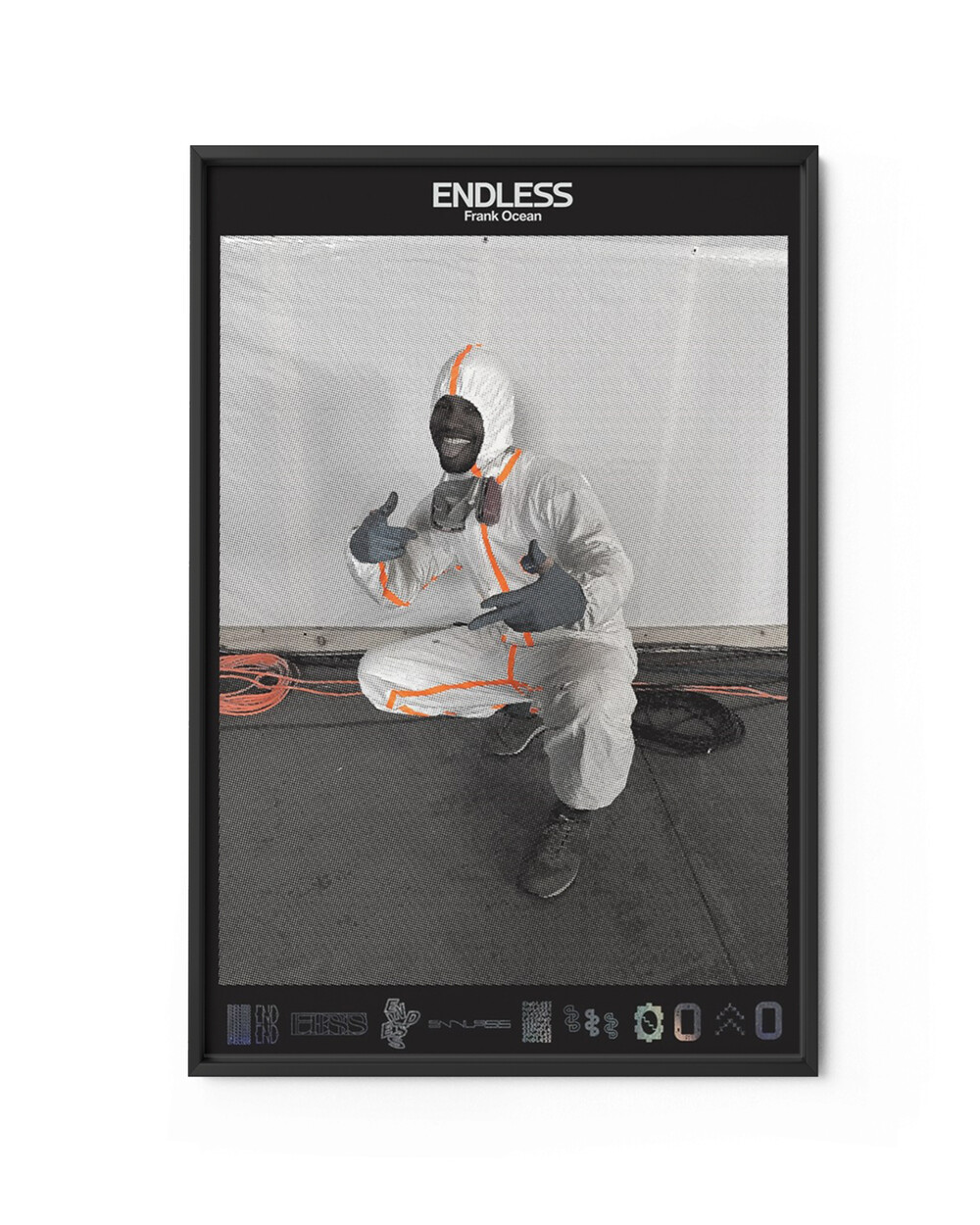 Frank Ocean은 2017년 사이버 먼데이에 맞춰 2016년 발표한 비주얼 앨범 'Endless'를 스페셜 바이닐과 CD/DVD 에디션으로 리마스터해서 발매했습니다. 이 포스터는 올드스쿨 포맷으로 재발매되었던 'Endless'의 여러가지 에디션 중 하나로서 양면으로 제작되었습니다.
