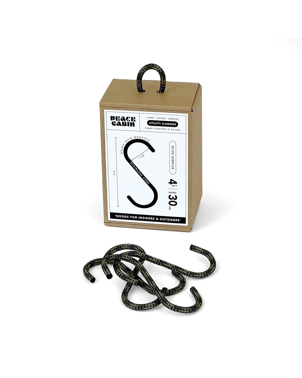 피스 카빈에서 수제작으로 만들어지는 이 로프로 덮인 S-후크는 옷, 화분, 수건, 빗자루 등을 걸어두는 등 다용도로 활용할 수 있는 액세사리입니다.