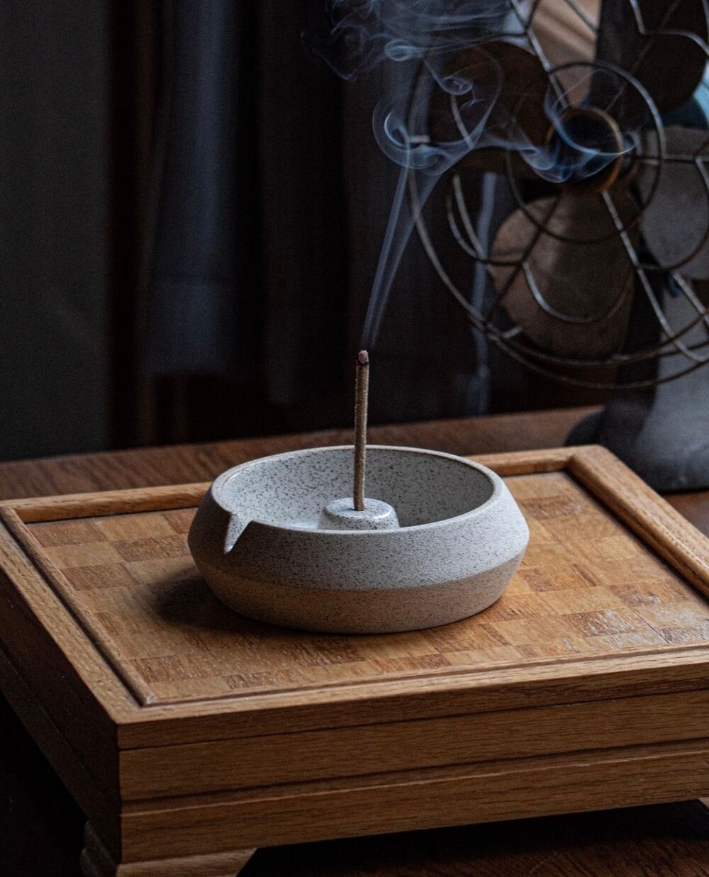 중앙의 향 받침으로 인센스 스틱을 꽂거나 나무, 콘을 이용한 향을 태울 수 있습니다.
