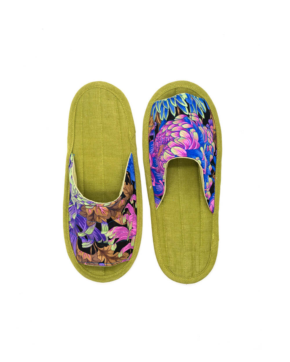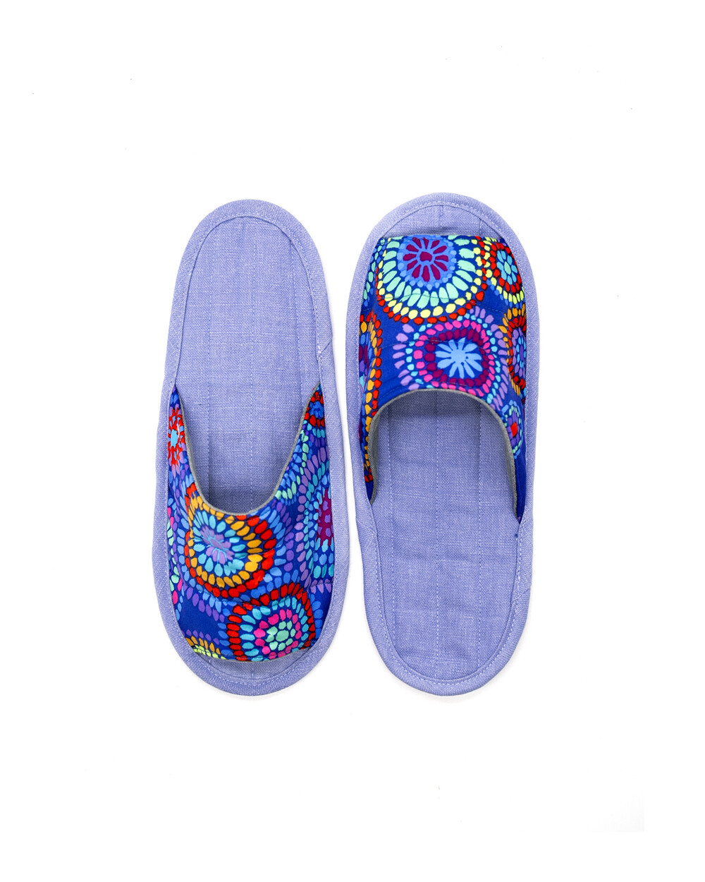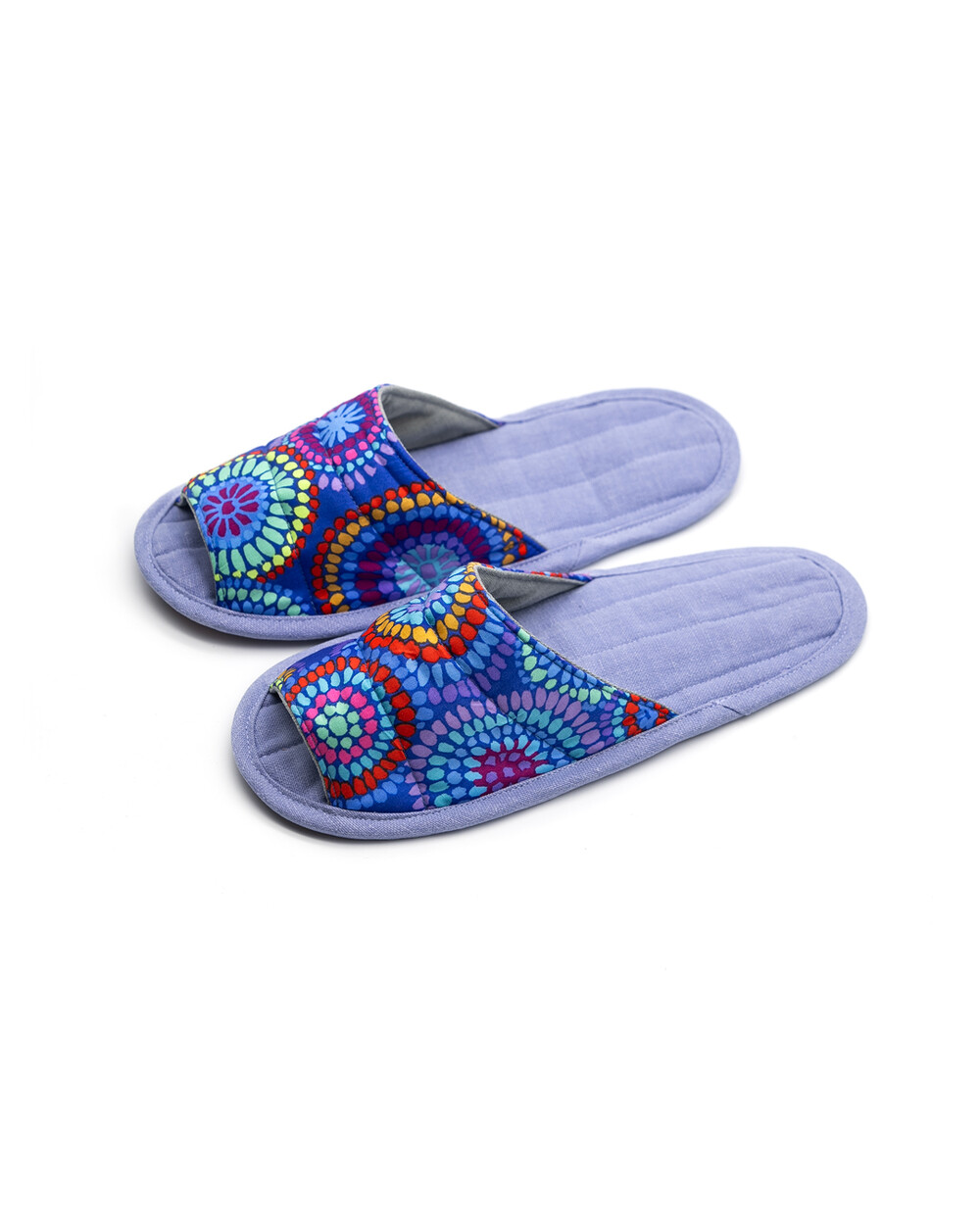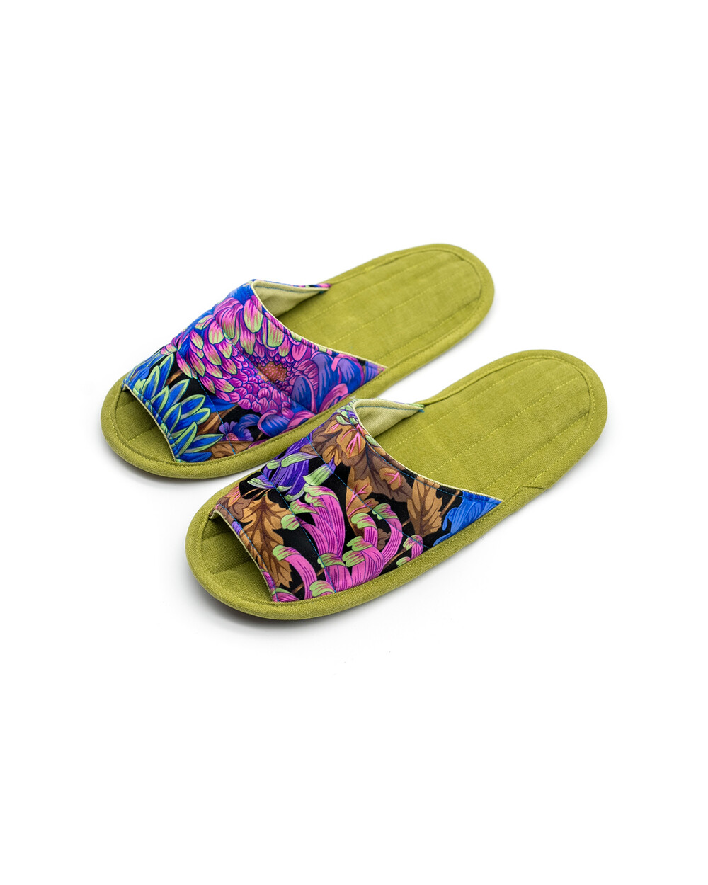한국 섬유 산업의 호황기를 상징하는 과감한 텍스타일이 인상적인 누비 슬리퍼입니다. 재래시장 한켠에서 혹은 어르신들이 온돌방에 앉아 TV를 보며 신고 있을 법한, 익숙하면서도 정겨운 풍경이 자연스럽게 그려집니다. 이불이나 방석에서 비롯한 패턴들은 주로 꽃을 중심으로 한 문양과 화려한 배색으로 변주되었습니다. 좌식 및 온돌에 최적화된 두께 및 소재와 포근한 착화감으로 온가족이 사용하실 수 있습니다.