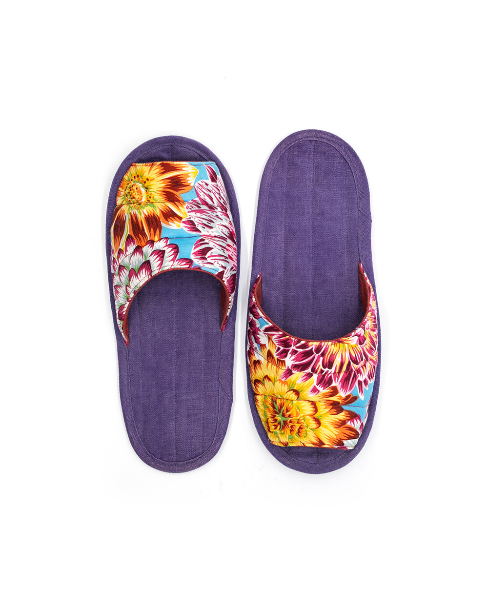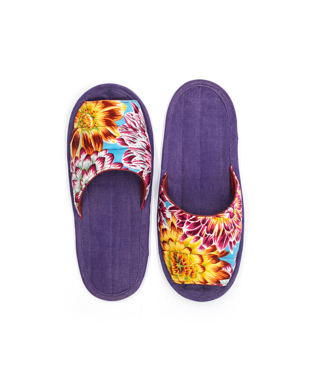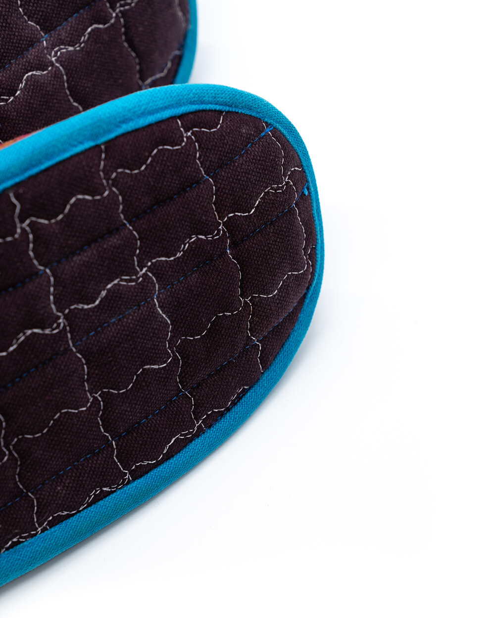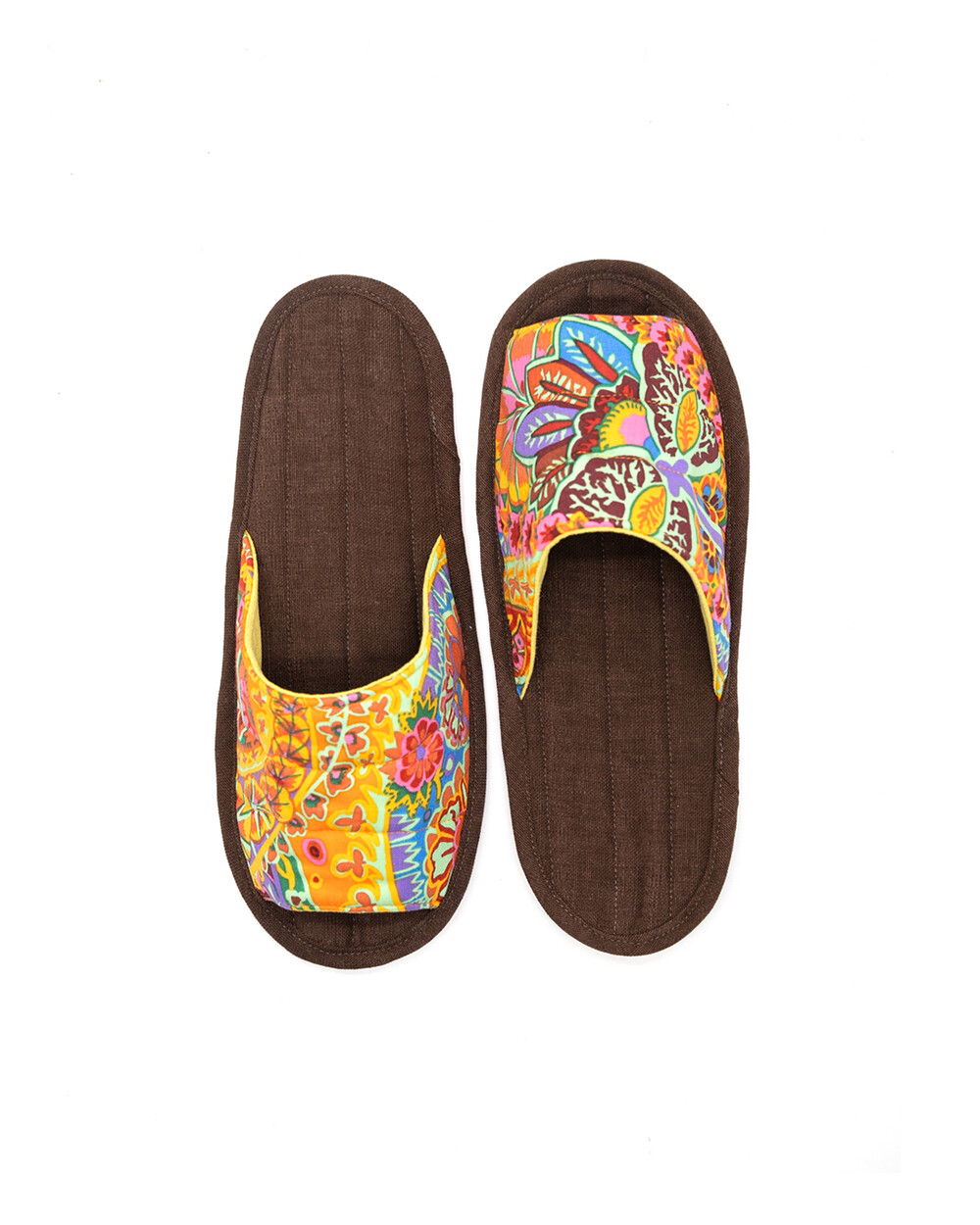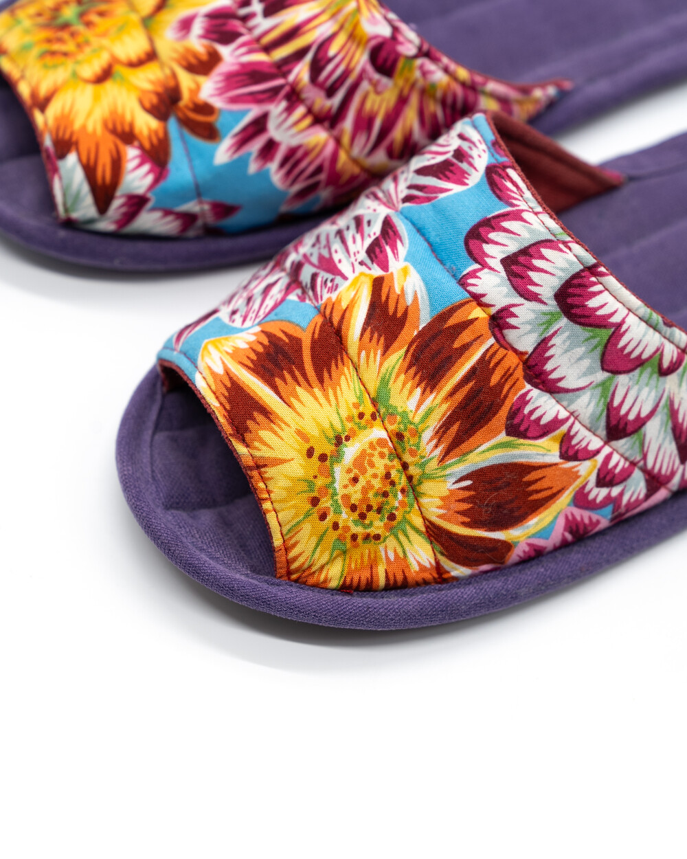 한국 섬유 산업의 호황기를 상징하는 과감한 텍스타일이 인상적인 누비 슬리퍼입니다. 재래시장 한켠에서 혹은 어르신들이 온돌방에 앉아 TV를 보며 신고 있을 법한, 익숙하면서도 정겨운 풍경이 자연스럽게 그려집니다. 이불이나 방석에서 비롯한 패턴들은 주로 꽃을 중심으로 한 문양과 화려한 배색으로 변주되었습니다. 좌식 및 온돌에 최적화된 두께 및 소재와 포근한 착화감으로 온가족이 사용하실 수 있습니다.