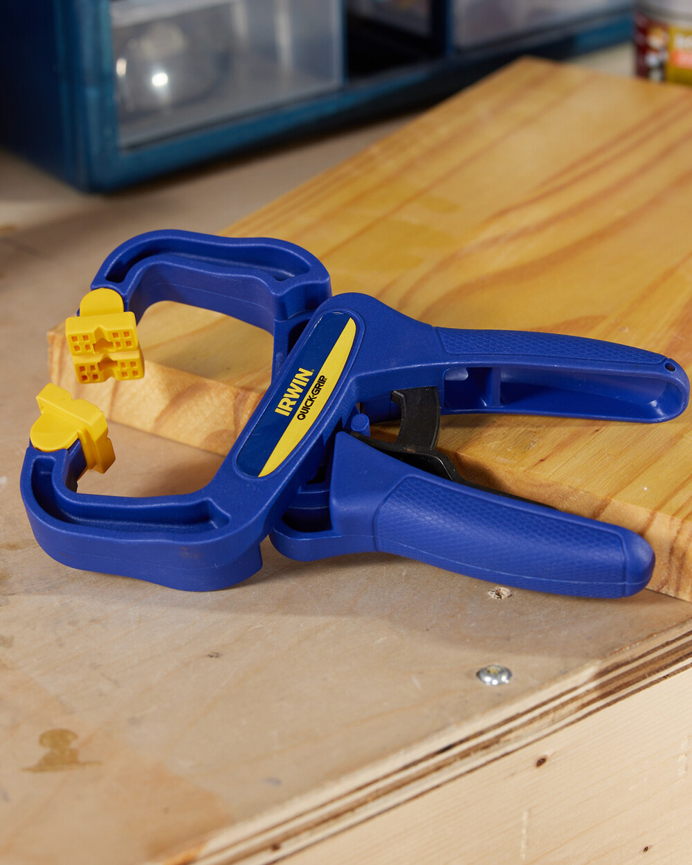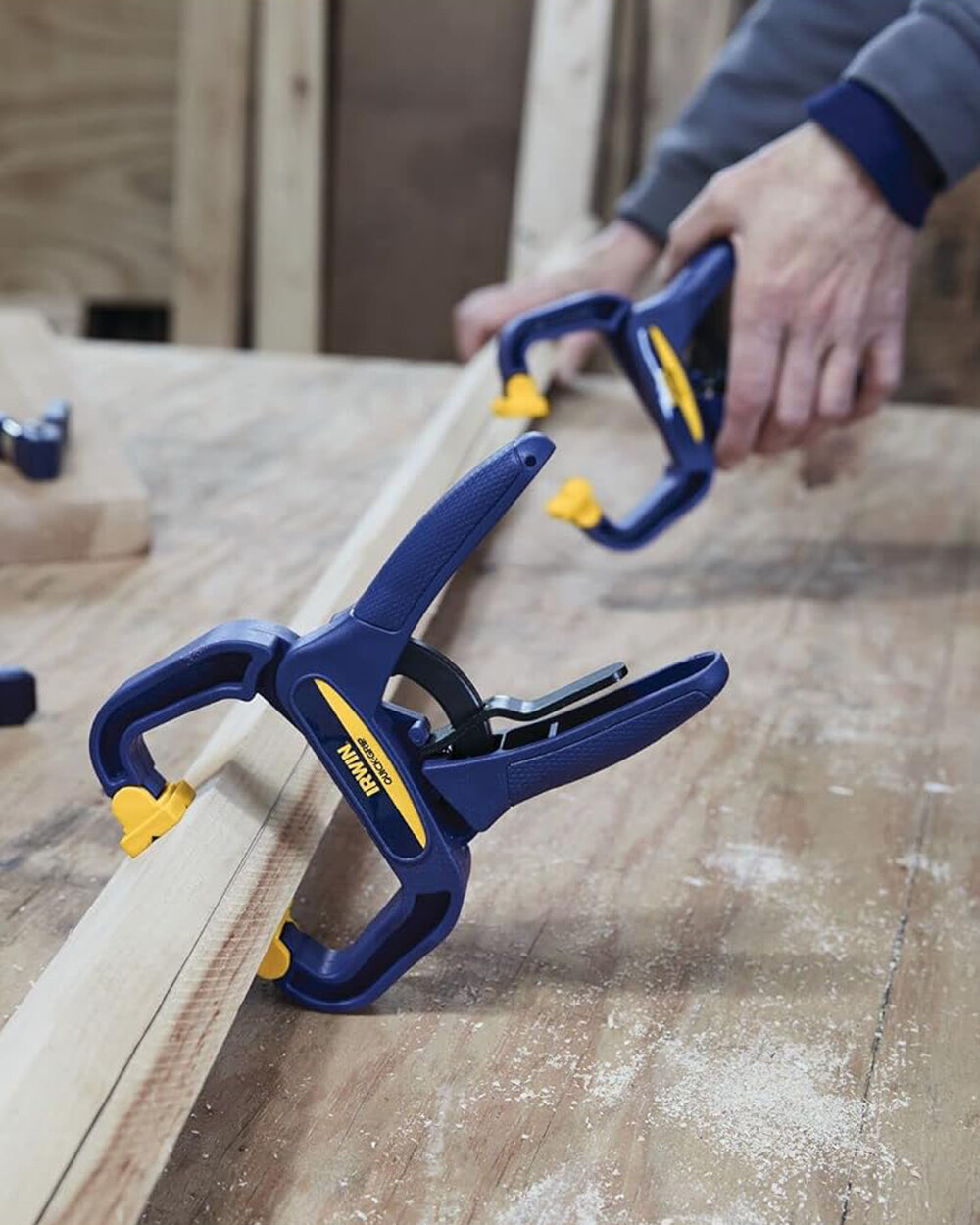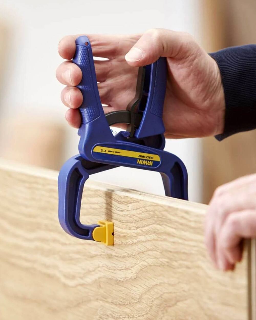 어윈의 퀵그립 핸디 클램프는 퀵 릴리스 트리거가 있어 안정적인 고정력과 더불어 클램프를 간편하게 해제할 수 있습니다. 부드럽고 내구성이 뛰어난 패드는 마감재를 섬세하게 보호합니다.
