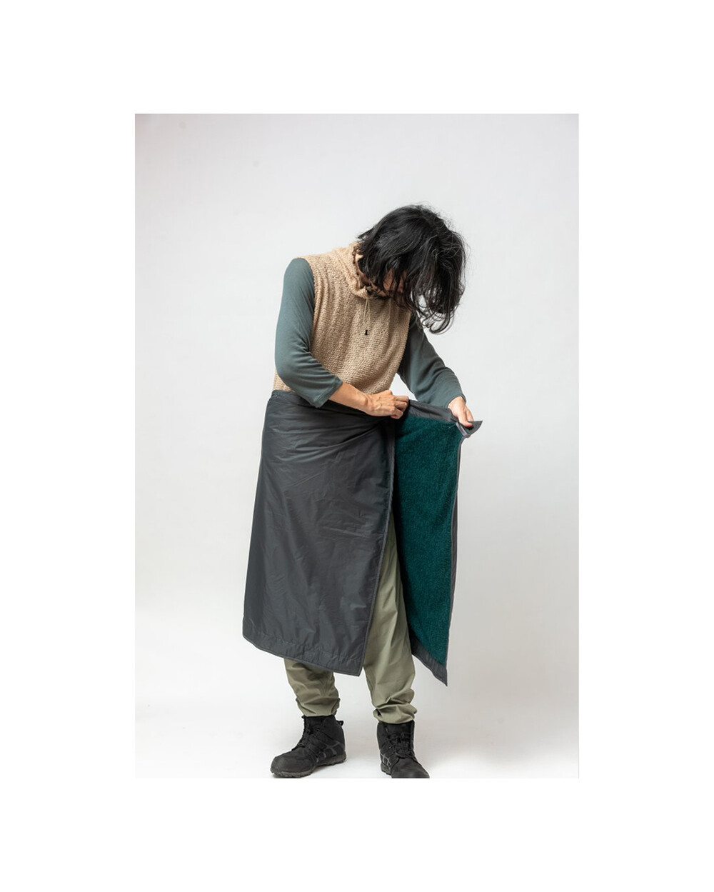 아틀리에블루보틀의 알파 망토는 미드 레이어로 애용되는 경량 소재인 Polartec Alpha Direct로 제작되었으며 매우 가볍기 때문에 (143g) 산행 시 무게의 부담은 줄이고 방수 및 보온 등 기능적으로는 다용도 사용이 가능한 만능 망토입니다.