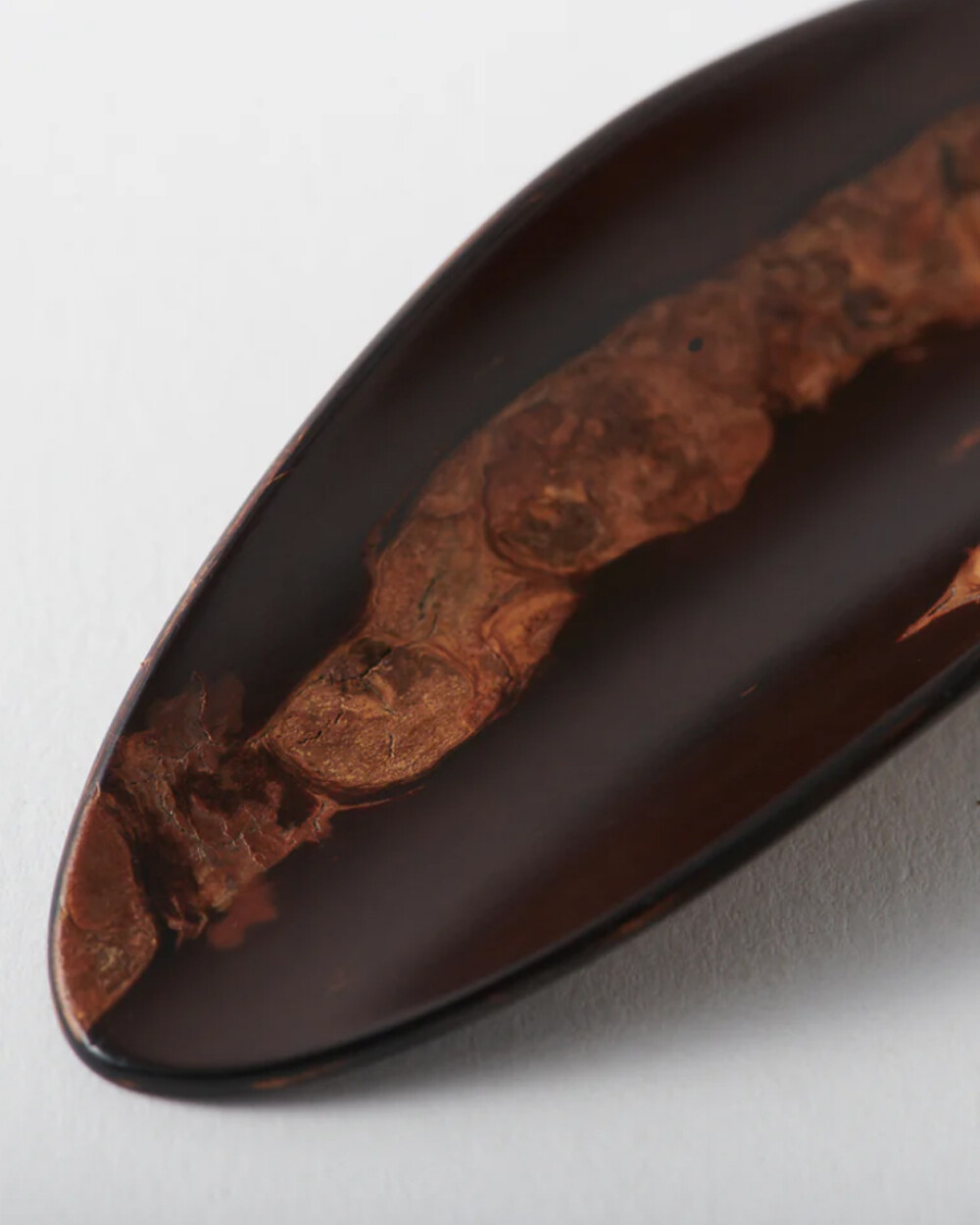 단순히 겉표면에 껍질을 덧대는 것을 넘어, 벚나무 껍질을 겹겹이 쌓아 올린 후 나뭇잎 모양으로 섬세하게 조각하여 측면의 아름다운 레이어까지 감상할 수 있습니다