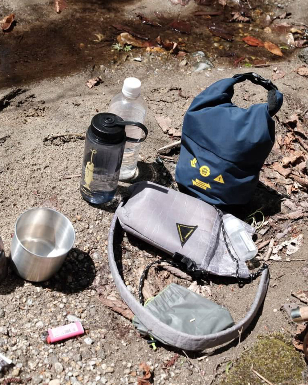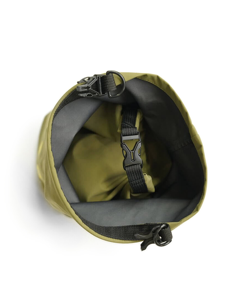 아틀리에 블루보틀의 TRASH BAG은 산에서 나온 쓰레기를 쾌적하게 수거·배출하도록 고안된 이중 롤탑 파우치로 POLARTEC 투습 방수 소재가 액체가 새는 것을 막고 공기를 배출함으로 쓰레기 및 의류를 압축해서 컴팩트하게 보관할 수 있습니다.