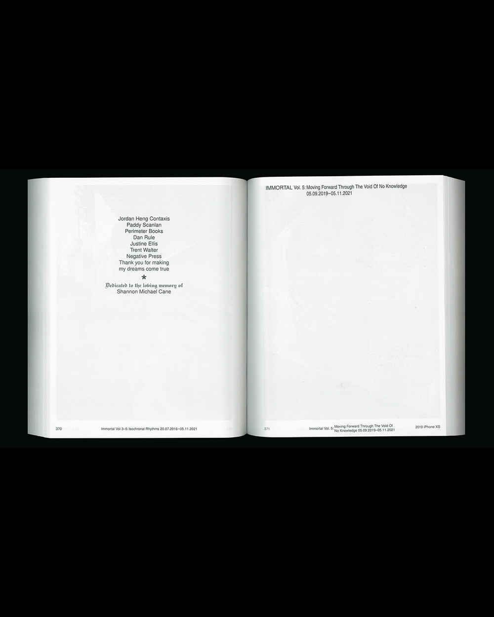 IMMORTAL 출판 작업은 각 사진에 중요성을 부여합니다. iPhone 사진은 종종 일회용으로 간주되며 촬영 후 대부분 무시되거나 잊혀집니다. iPhone의 사진 폴더 깊숙한 곳에서 썩어가거나, iCloud 저장소에서 잊혀지거나, 백업하지 않고 iPhone을 잃어버렸을 때 또는 백업을 저장한 컴퓨터나 하드 드라이브를 버릴 때 영원히 사라질 위험이 있습니다. 이 책은 iPhone 사진의 수많은 디지털 파일을 탐험하고 물리적 아카이브를 만드는 궁극적인 형식입니다.