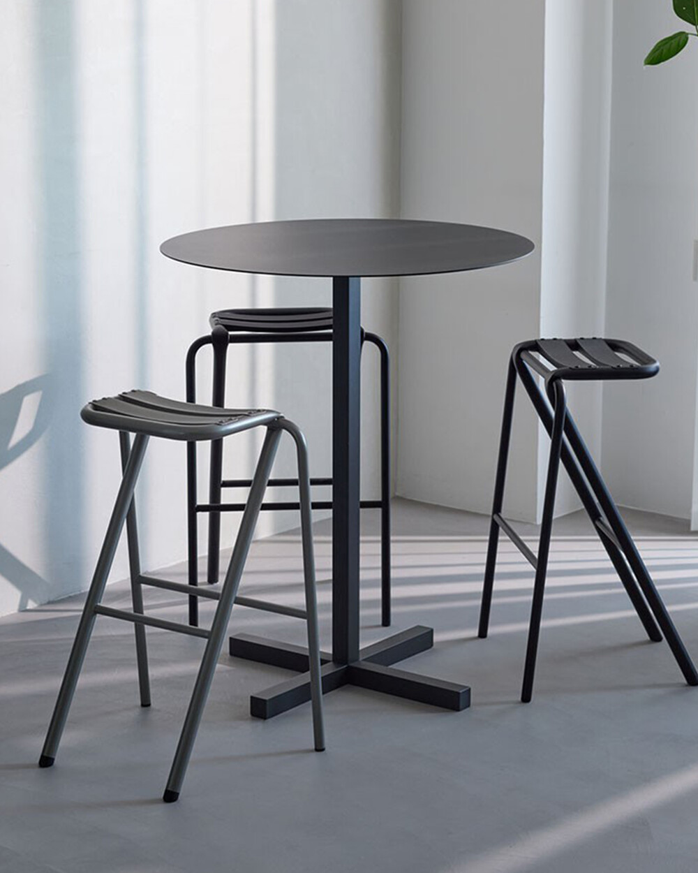 스위스 로잔 주립 미술 학교에서 디자인을 전공한 이와모토 코사이가 설계한 듀엔데의 벤트 스툴입니다. 좌판을 지탱하는 두꺼운 파이프가 열에 녹아든 듯 앞다리에 쓰인 얇은 파이프를 따라 눌려 고정되면서, 방향을 바꿔 대각선으로 이어지는 구조가 특징입니다. 이는 볼트 등으로 결합할 때 연결 부위의 파이프를 눌러 납작하게 만드는 ‘튜브 플래트닝(Tube Flattening)’ 기법을 재해석한 것으로, 불필요한 형상을 제거해 구조적으로 안정적일 뿐 아니라 디자인 면에서도 아름다운 실루엣을 완성합니다.