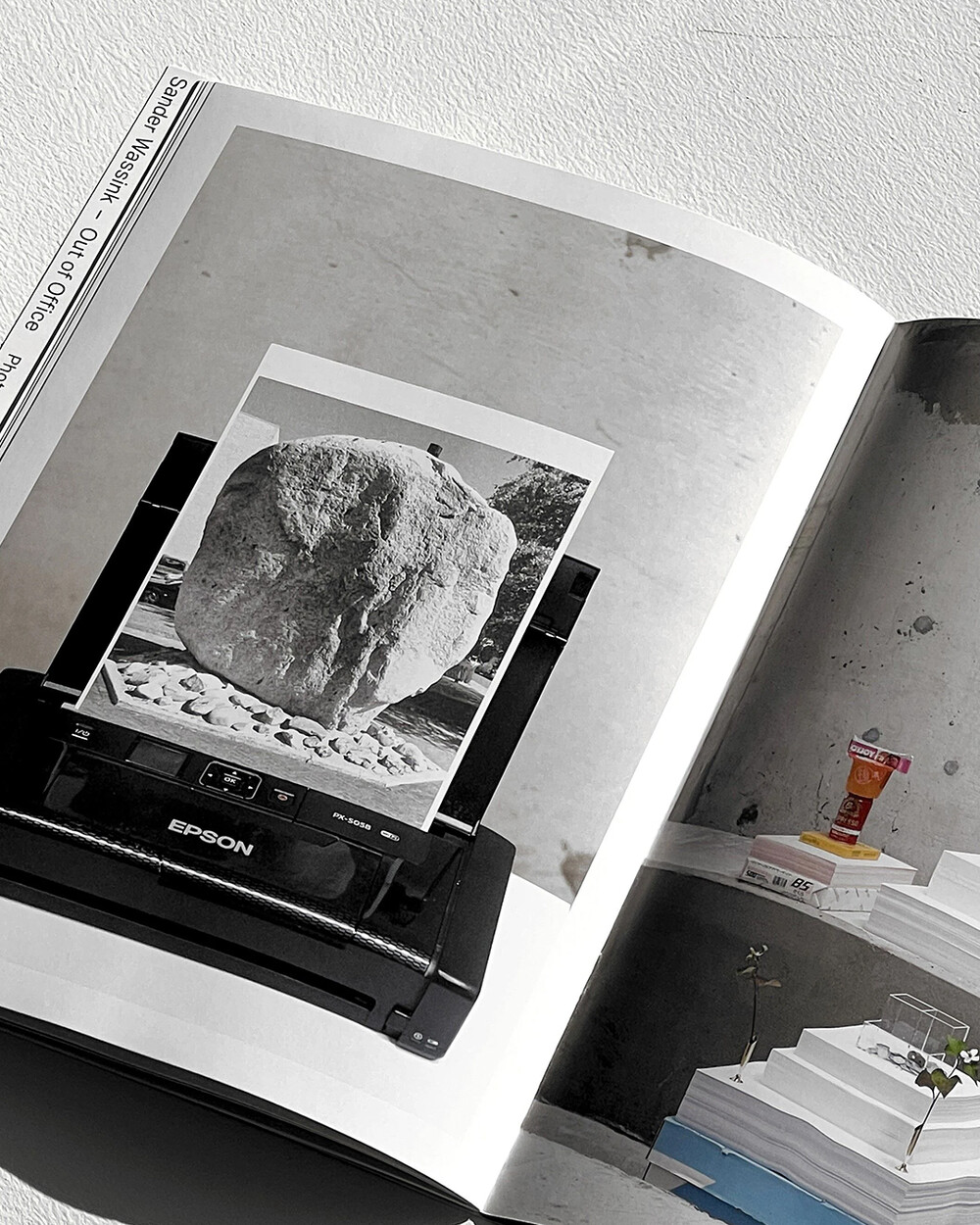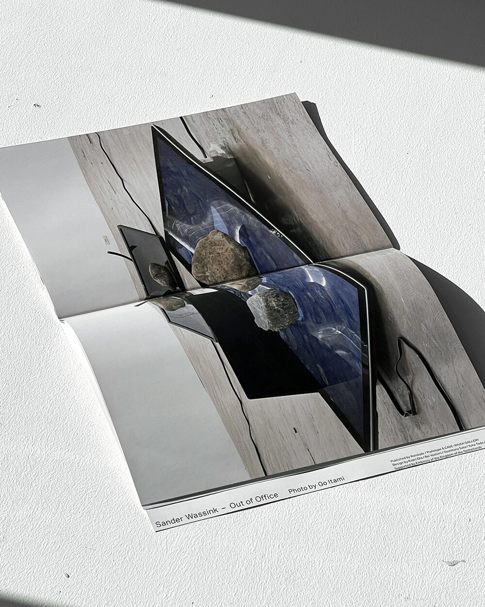매립된 돌멩이나 일상의 쓰레기조차도 사람들의 삶과 전통, 땅의 풍경을 더듬어 볼 수 있는 단서가 될 수 있습니다. Out of Office는 네덜란드 출생으로 교토에 거주하던 Sander Wasink의 2022년 전시로서 휴대 전화나 모니터, 분쇄기 등 오피스를 상징하는 물건들과 교토-도쿄 사이를 자전거로 여행하며 모은 여러 잡동사니들, 영상이나 소리등을 이용해 현대 사회에 있어서의 자연·시간·물질·공간의 관계성을 새로운 시점으로 파악한 설치 미술입니다. 이 책은 전시를 기반으로 Rondade에서 발행된 서적입니다.