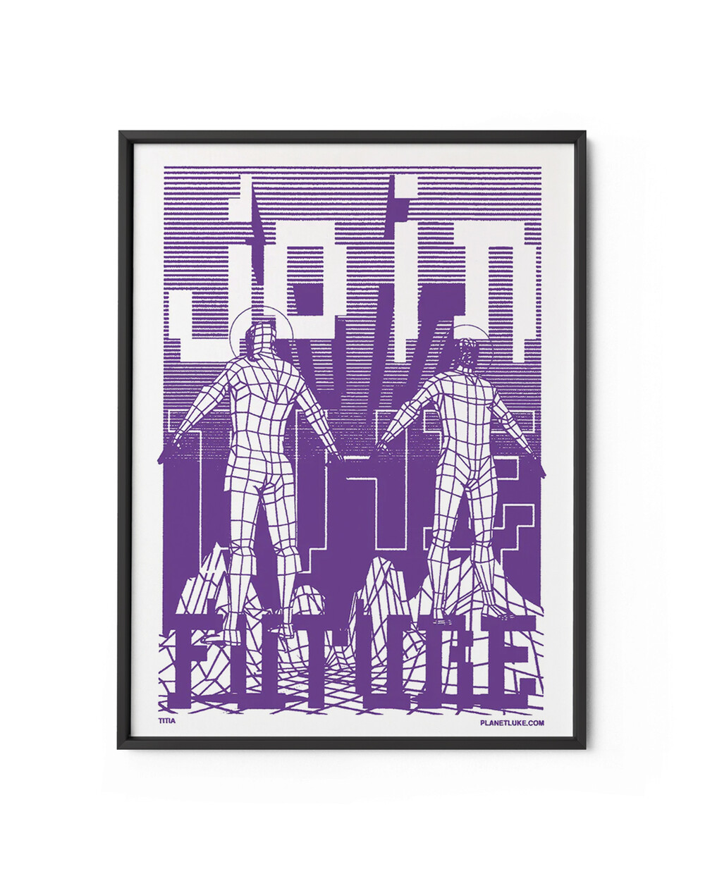 'Join The Future' 포스터는 클라세렉스의 Luca Lozano와 DJ Titia가 Duotoon 프로젝트의 일환으로 제작했습니다. 제목은 1991년의 오래된 Bleep Techno 레코드에서 가져왔으며 PANTONE 266C로 마감된 컬러 조합은 셰필드 Warp Records를 향한 존중의 표식입니다.