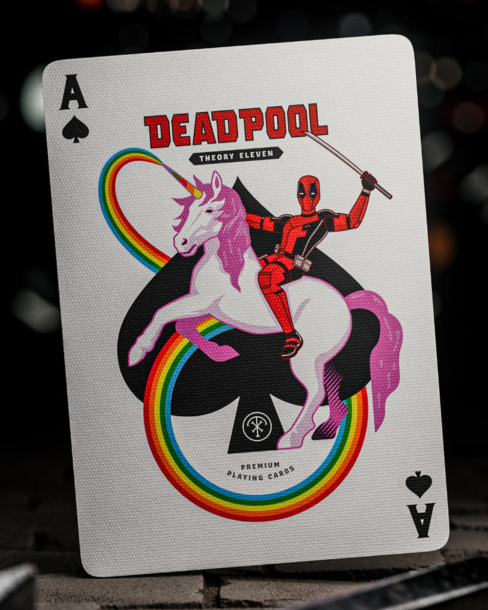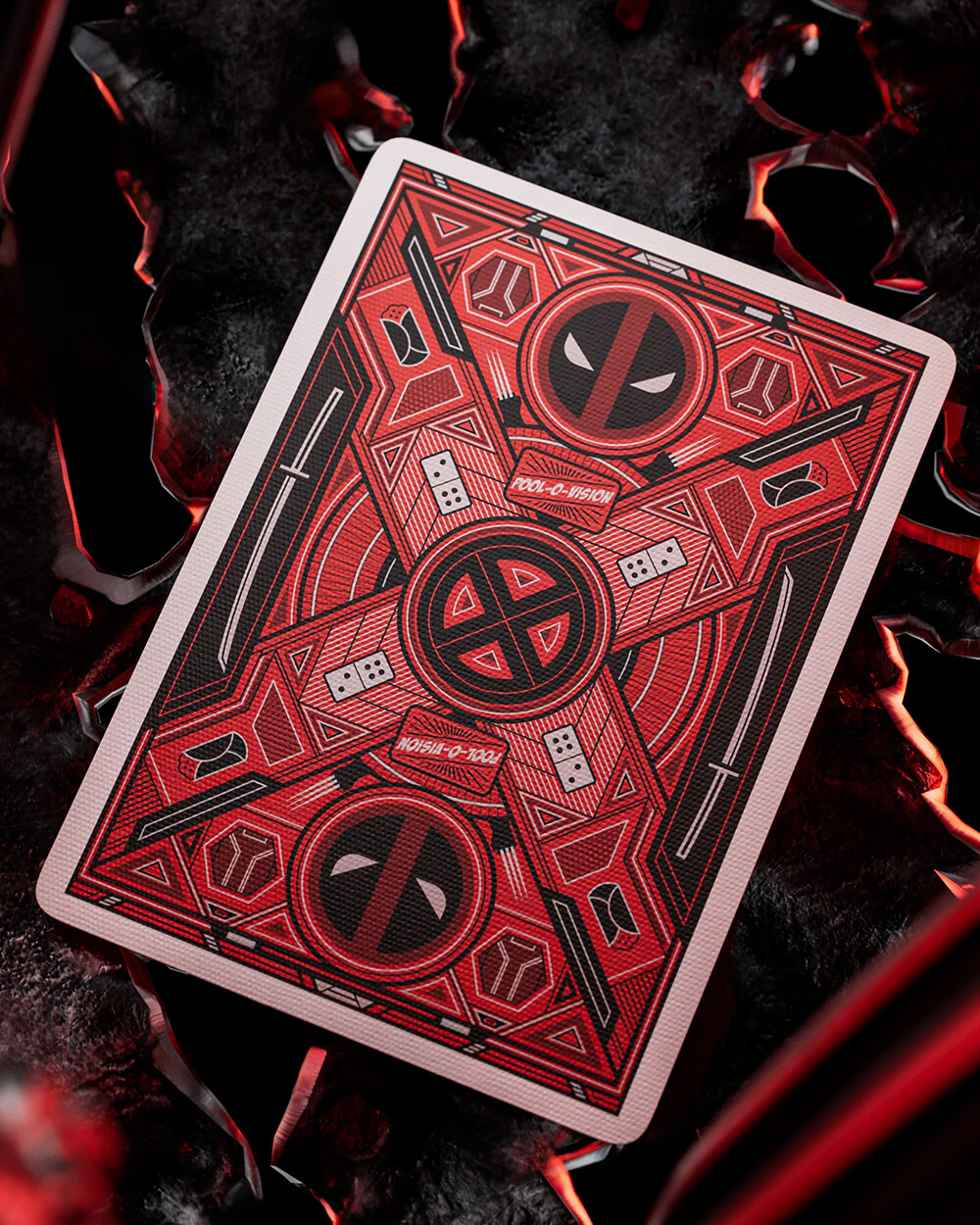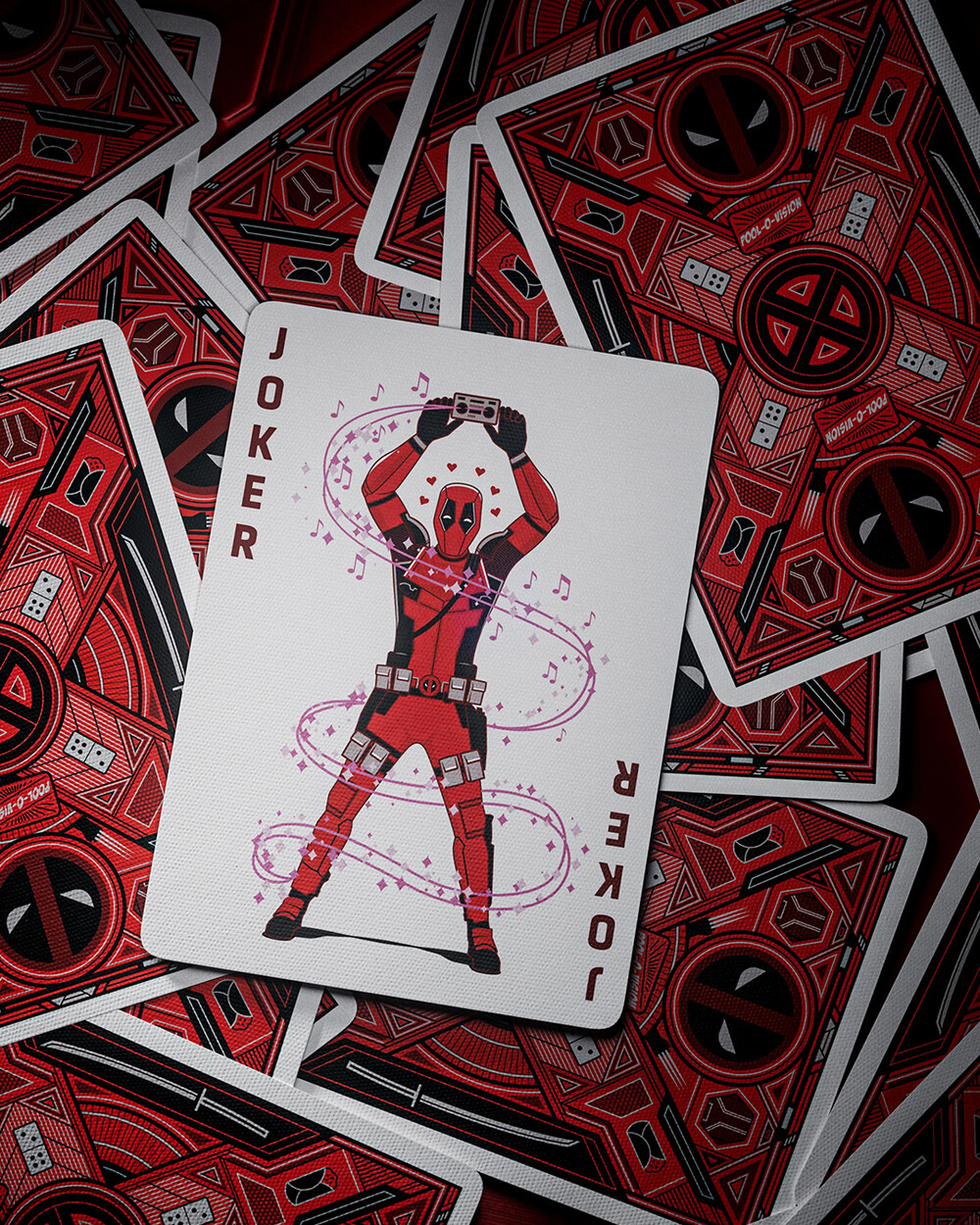 “위대한 힘엔… 위대한 무책임이 따른다.” 마블의 악명 높은 용병, 데드풀을 테마로 한 공식 라이선스 프리미엄 카드 덱. 데드풀의 시그니처 슈트를 본뜬 하드한 블랙/레드 박스에 담겨 있으며, 표면은 엠보싱과 실버 포일 디테일로 마감되어 있습니다.