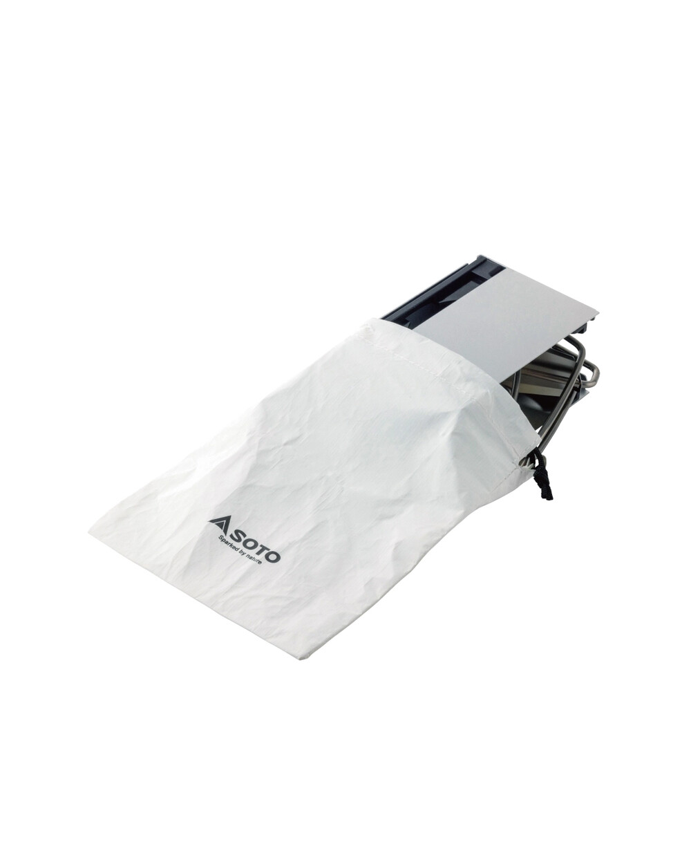 수납 시에는 테이블을 접어 그 사이에 TriTrail(ST-350) 스토브를 딱 맞게 끼워 넣을 수 있습니다. 이 상태 그대로 ST-350의 전용 수납 파우치에 쏙 들어가는 사이즈로 제작되어, 스토브를 충격으로부터 보호하는 케이스 역할까지 겸비한 아이디어 제품입니다. 스토브 없이 단독 미니 테이블로도 활용이 가능합니다.