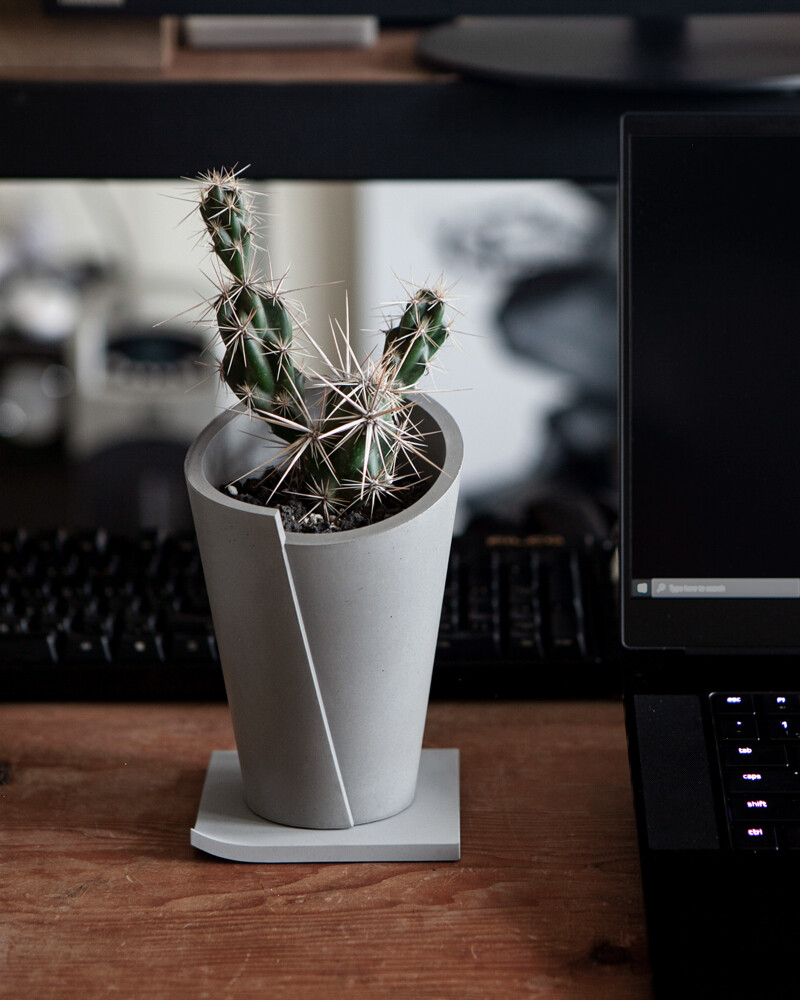 핸드메이드로 제작된 딜리오의 콘크리트 화분입니다. 딜리오의 독창적인 유머가 돋보이는 'Vertigo' 화분은 미묘하게 엇갈려있는 원뿔 디자인이 단순하면서도 독특한 매력을 줌으로써 사무실 및 집안 환경을 돋보이게 해줍니다.