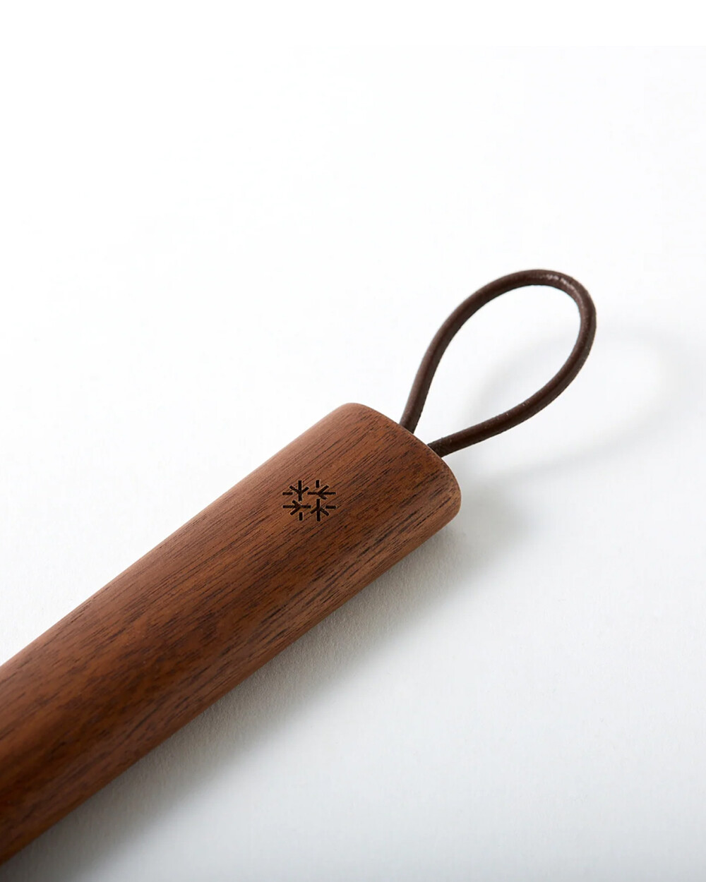 일본 홋카이도 아사히카와의 전통 있는 목공예 브랜드 '사사키 공예' 에서 정성스럽게 깎아 만든 원목 구둣주걱입니다. 손에 부드럽게 감기는 그립감과 발뒤꿈치를 매끄럽게 안내하는 유려한 곡선이 기분 좋은 외출을 돕습니다.