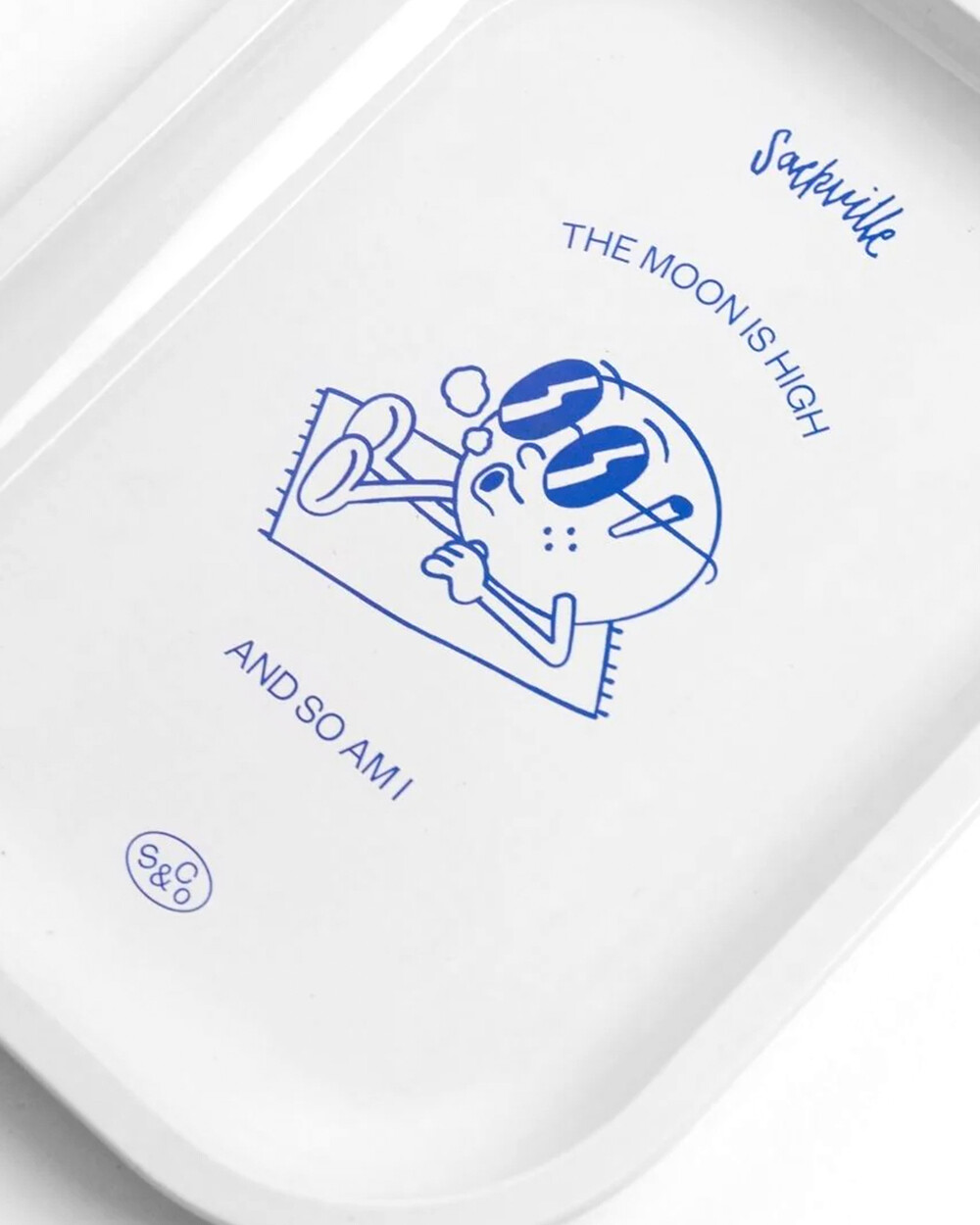 Sackville & Co 의 시그니처 아이콘과 스모커 문구로 장식된 이 금속 트레이는 향을 태울 때 받침대로 사용하거나 잡동사니를 정리하는 등 다양한 용도로 사용하실 수 있습니다.