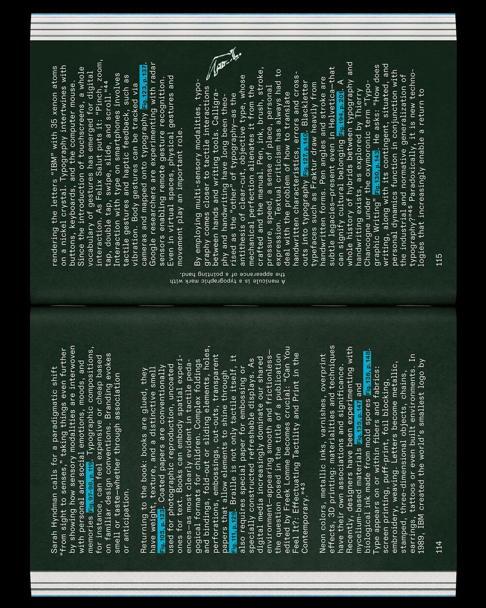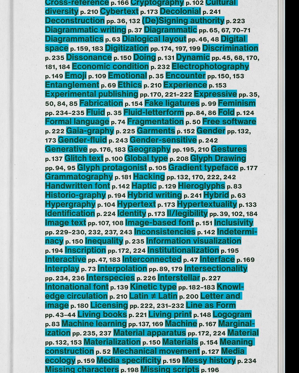 243점의 도해/이미지와 여섯 가지 이론적 제안을 통해 독자에게 타이포그래피를 재협상(renegotiations), 재-시선화(re-visions) 로 초대하며 텍스트와 인용구, 역사적 및 동시대 문서, 다이어그램, 이미지가 서로 얽히며 타이포그래피를 하나의 고정된 규율이 아니라 살아 있는 장으로 보여줍니다. 이 책은 백과사전도 아니고, 매뉴얼도 아니고, 역사서도 아닙니다. 오히려 “개요라는 것이 애초에 불가능하다는 사실에 대한 개요”에 가깝고, 예측 불가능하고 어디에도 도달하지 않을 수도 있는 ‘추측적 모험(speculative adventures)’으로 독자를 불러냅니다.