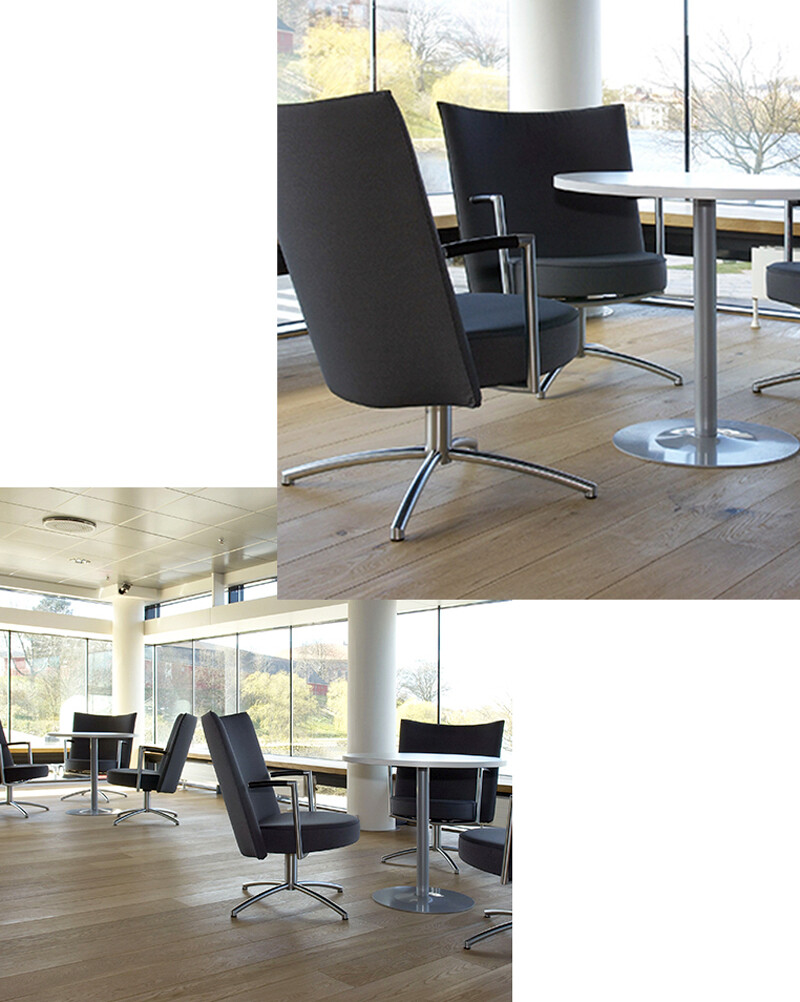 파트너 체어는 이름에서 알 수 있듯이 사무실, 회의실 또는 호텔과 같은 공식적인 환경을 위해 제작되었지만 가정에서도 멋진 모습으로 연출할 수 있습니다. Hotel Hilton by Copenhagen Airport와 Danske Bank의 금융 센터에서 사용되었습니다.