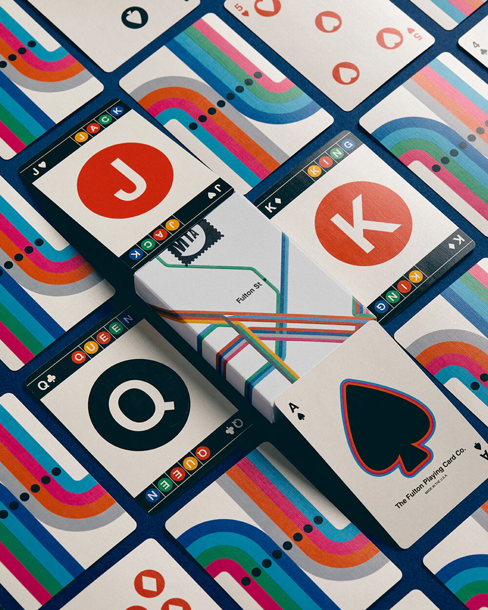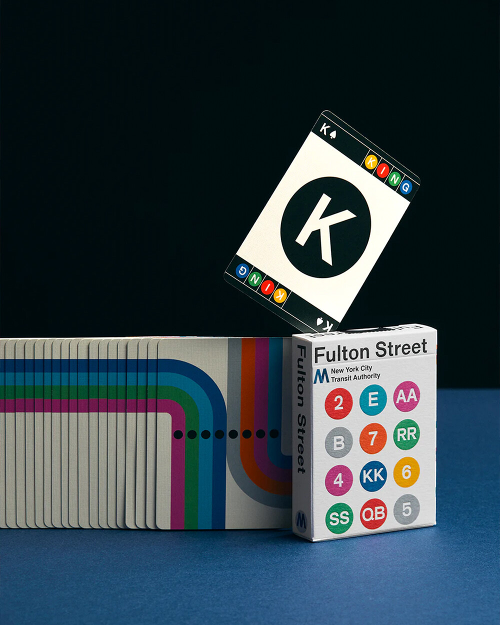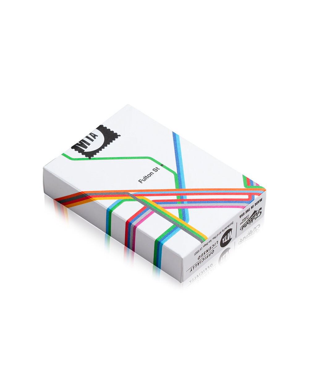이 특별한 플레잉 카드는 1972년 Massimo Vignelli가 디자인한 아이코닉한 MTA 뉴욕 지하철 노선도의 50주년을 기념합니다.