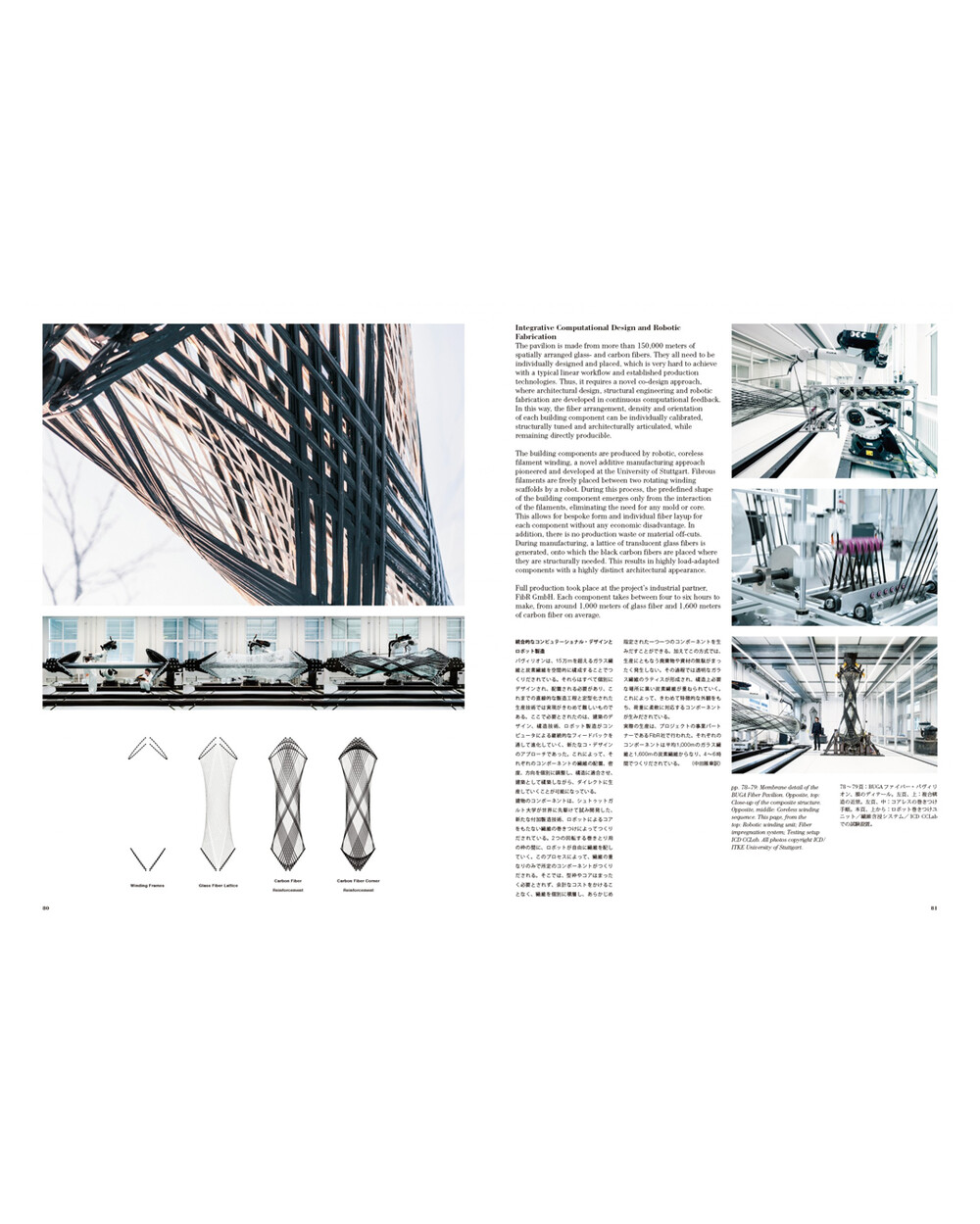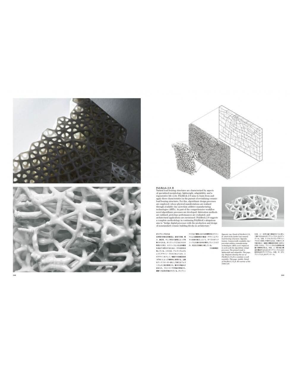 이번 a+u에서는 자유형 고층 외골격부터 신체용 생체 모방 웨어러블, 비표준 벽돌의 인쇄 구조에 이르기까지 다양한 범위에서 계산 설계와 디지털 제작의 적용을 살펴봅니다. 이는 1977년 찰스와 레이 임스의 영화 '파워 오브 텐'에서 개념적 힌트를 얻었습니다. 다양한 분야에서 활동하는 개인과 단체의 14개 프로젝트가 선정되었으며, '디지털 방식으로 사고하는 것'이 현 시대의 수단으로 무엇을 할 수 있는지를 제시합니다.