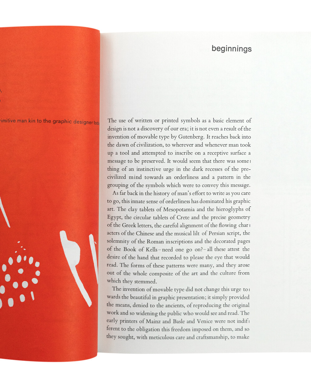 Carl Dair는 크기, 무게, 구조, 형태, 색상, 방향 및 질감과 같은 유형의 주요 디자인 요소를 자세히 설명하고 책, 광고, 잡지 및 기타 인쇄물에서 타이포그래피의 응용 사례를 설명합니다. 다양한 타이포그래피 서체가 언급되고 전 세계의 상상력 넘치는 타이포그래피 사례 150여 개를 소개하는 이 책은 타이포그래피 분야의 고전적인 작품으로 이후 타이포그래퍼와 인쇄 매체 디자이너에게 미친 Carl Dair의 영향은 상당하며 초기 타이포그래피 연구서로서 소장 가치가 있습니다.