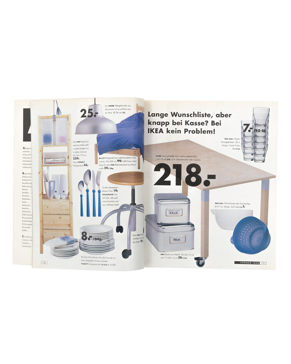 1900부터 1999년까지 이케아의 90년도를 총망라하는 카달로그 컬렉션입니다. 1943년 창립된 이내로 오늘날까지 주거공간 및 오피스, 주방, 텍스타일 등 다양한 공간에 필요한 가구와 소품을 제작해온 이케아는 가구 구입과 사용에 대한 라이프 스타일의 패러다임을 바꾼 가구 회사입니다.