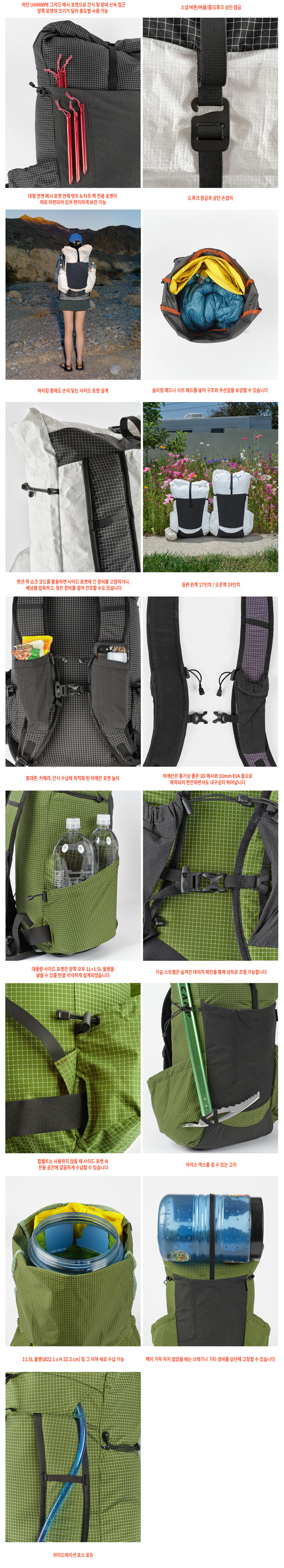 +찢어짐과 마모에 강한 210d UHMWPE 그리드스탑 원단으로 제작, DWR 및 내부 PU 코팅 처리
