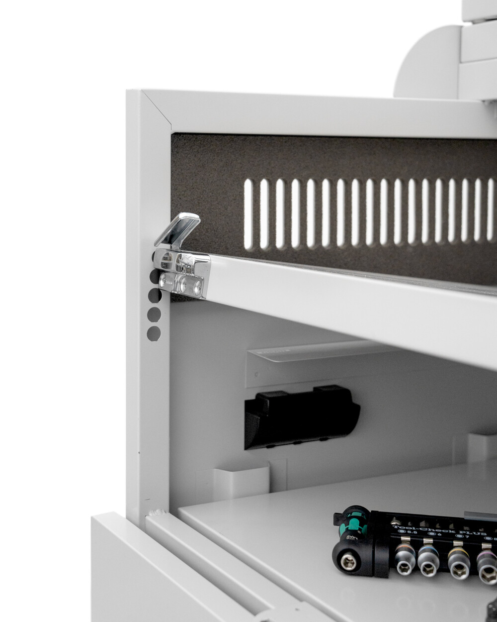 +접이식 도어 - 먼지와 도난으로부터 장치를 보호하며 모두 개방할 시 작업대로도 활용하실 수 있습니다.