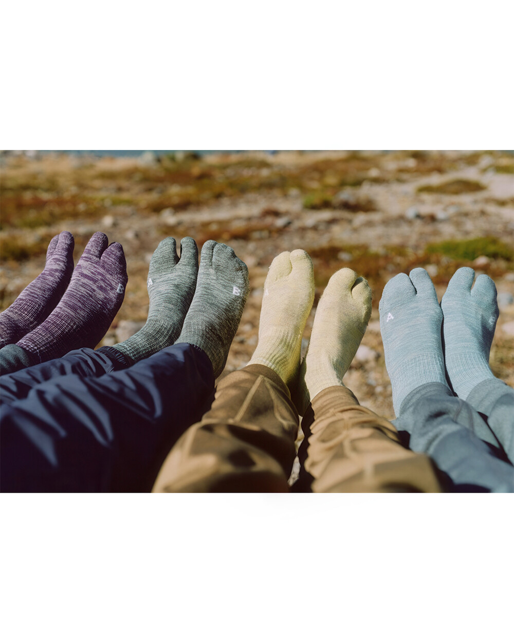 하이커스 삭스는 일본의 전통 양말 및 버선인 타비를 바탕으로 만든 하이킹용 양말입니다. 외형적으로도 특별하지만 산행시 힘을 효율적으로 분배하면서 피로도 및 접지력을 도와줍니다. 일본의 대표적인 양말 산지인 Nara에서 1820년부터 양말을 제작한 공장에서 제조되었습니다.