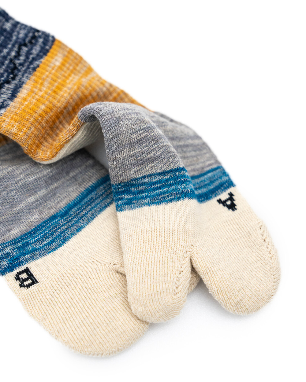 하이커스 삭스는 일본의 전통 양말 및 버선인 타비를 바탕으로 만든 하이킹용 양말입니다. 외형적으로도 특별하지만 산행시 힘을 효율적으로 분배하면서 피로도 및 접지력을 도와줍니다. 일본의 대표적인 양말 산지인 Nara에서 1820년부터 양말을 제작한 공장에서 제조되었습니다.