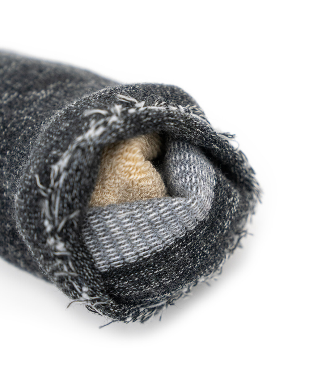 야크는 해발 3000m가 넘는 티베트와 중국 등 한랭지방 고원에서 서식하는 소로 혹독한 환경을 견디기위해 털이 두껍고 길며 보온성이 매우 뛰어납니다. 야크 털 중에서도 더 부드럽고 광택이 있어 높은 보온성이 있는 솜털과 수피마 유기농 코튼의 혼방을 염색없이 원료 그대로 사용했습니다.