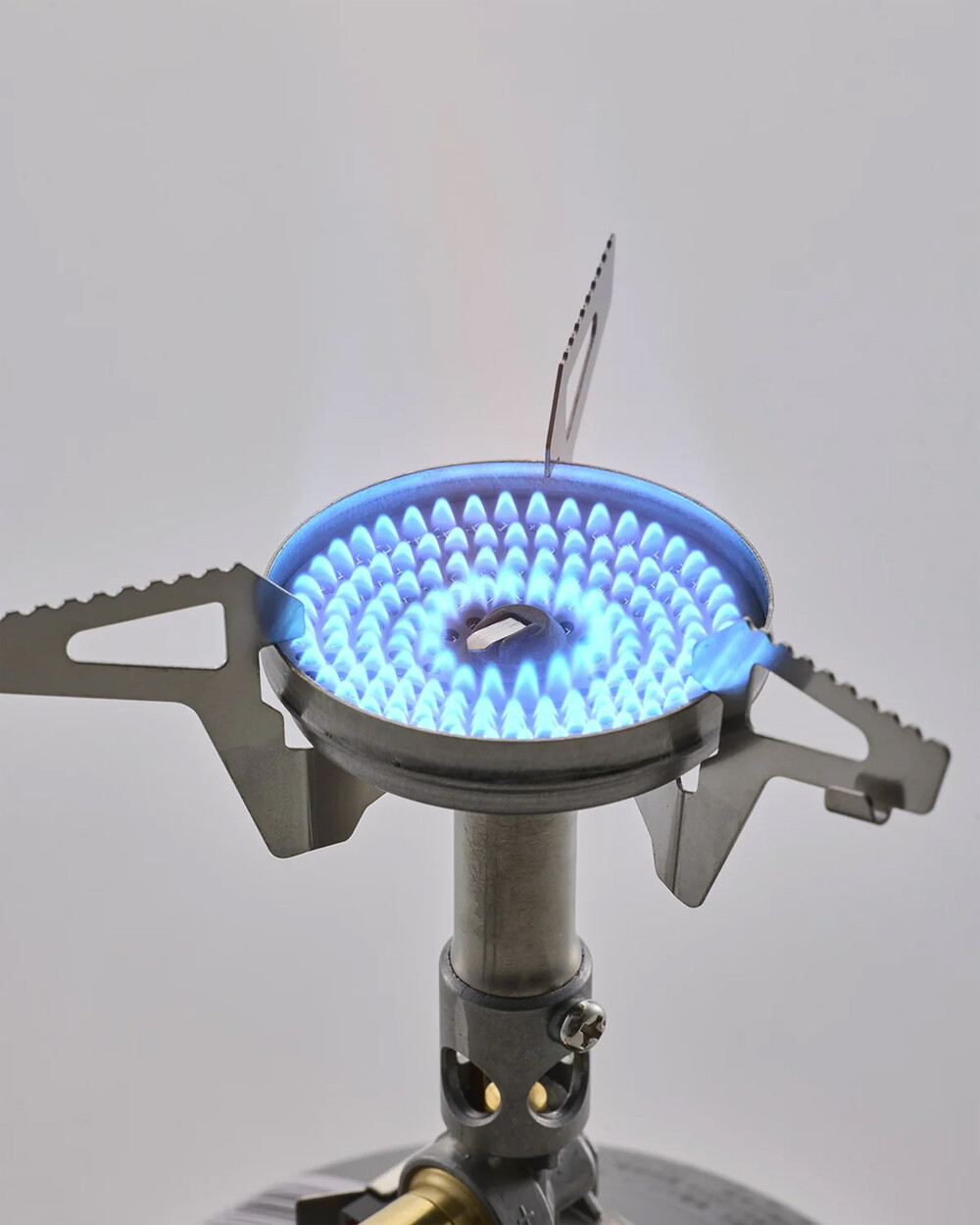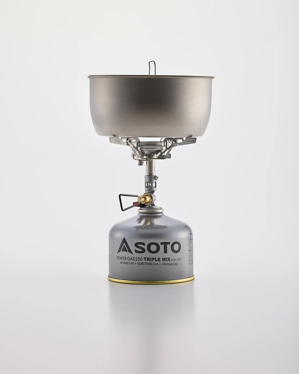 SOTO WindMaster 는 추위와 바람에 강한 초경량 가스버너입니다. 미세 압력 조절 밸브가 극한 환경에서도 출력을 안정적으로 유지하고, 사발형(오목) 버너 헤드가 불꽃을 감싸 윈드스크린 없이도 끓이는 속도를 높여 줍니다.