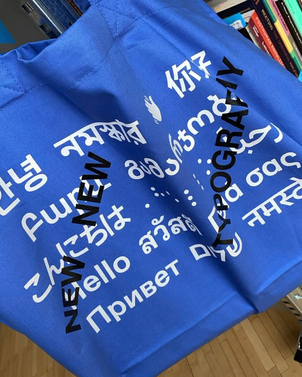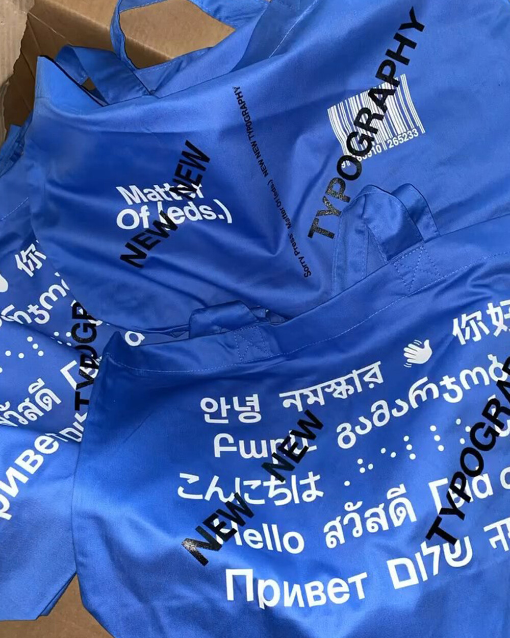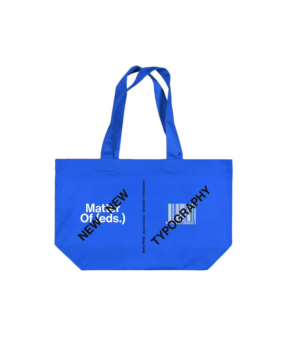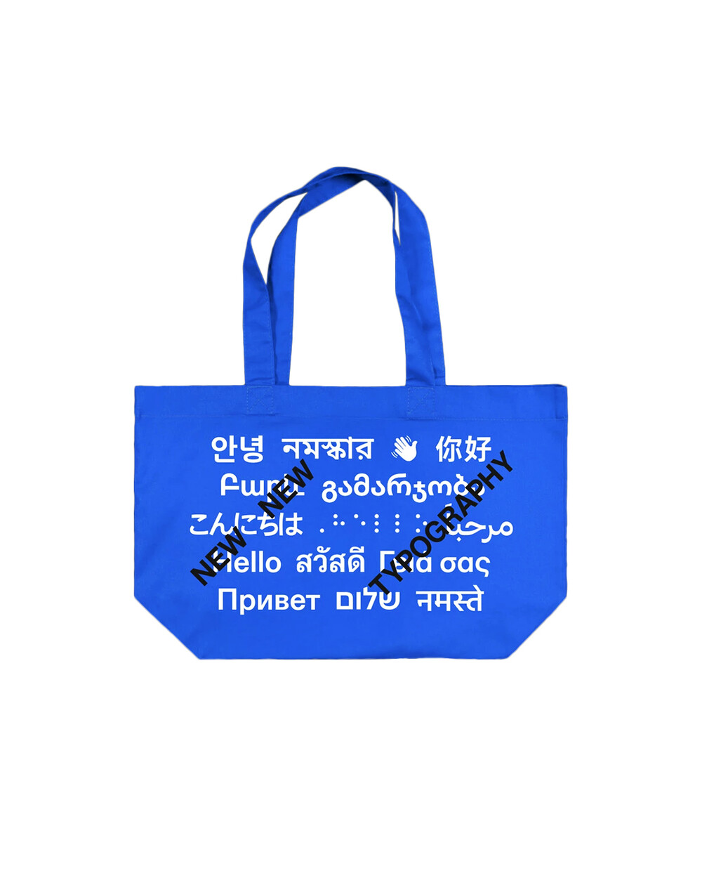 블루 컬러의 오가닉 헤비웨이트 토트로, 앞뒤 더블 사이드 실크 스크린 인쇄에 Dinamo 등 여러 스튜디오의 멀티 스크립트 폰트를 적용한 타이포그래피 굿즈입니다. 20세기 ‘New Typography’ 100주년을 다시 묻는 Matter Of의 New New Typography 프로젝트의 일부로 기획되어, 보편 규칙을 흔드는 포괄적 타이포 미학을 일상 휴대품에 담았습니다. 넉넉한 수납력과 견고한 230g/㎡ 코튼 원단으로 데일리 숄더/쇼퍼 용도에 적합합니다.