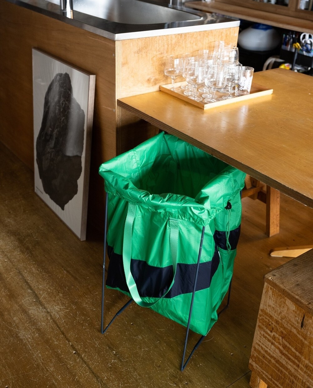 수잔 빌의 트래시 랙은 The New Trash Bag의 맞춤형 스탠드로 영구적인 사용이 가능합니다.