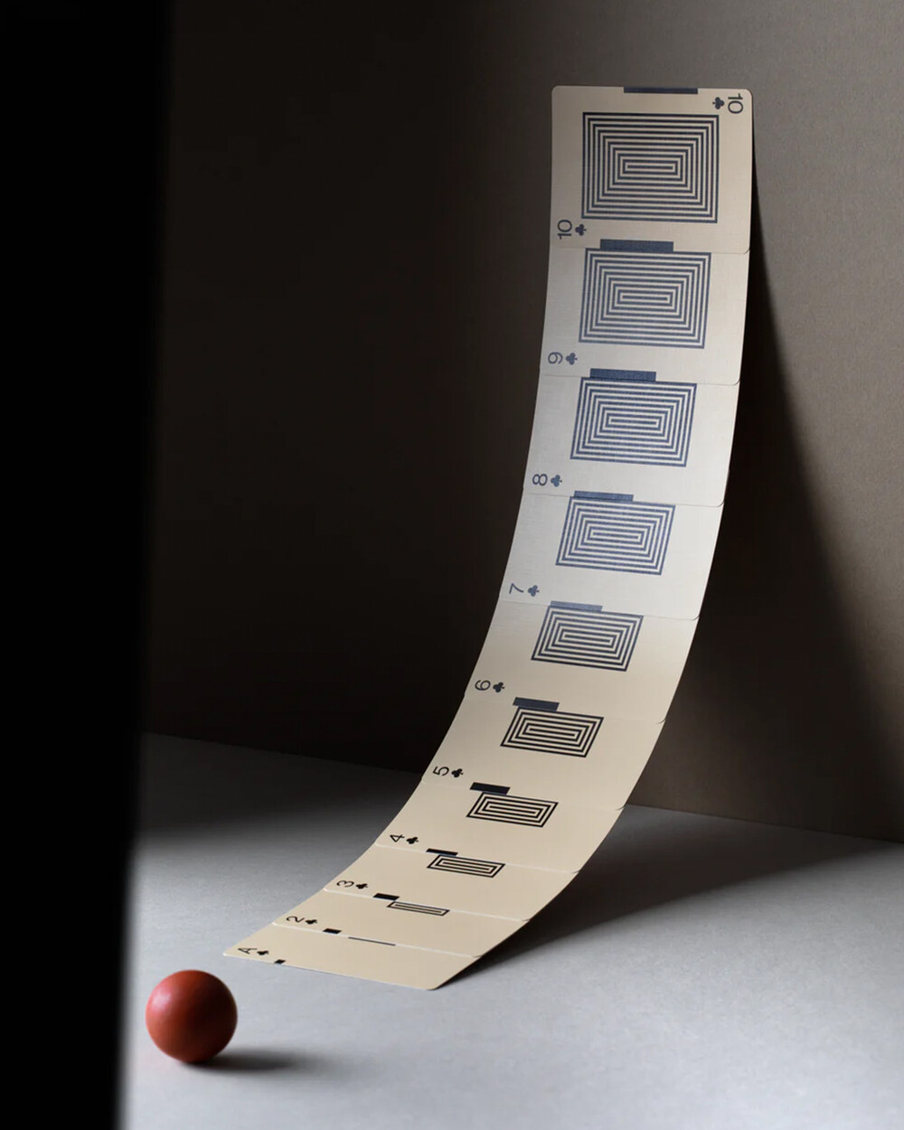 첫 번째 임스 에디션은 카드 뒷면에 스타버스트 로고가 새겨져있습니다. 임스의 작품 전반에 반복적으로 등장하는 이 상징적인 로고는 디자인의 한계에 도달하는 빛의 폭발, 즉 그들의 무한한 창조적 에너지를 상징합니다. 카드 앞면의 독특한 번호 체계는 임스 부부의 고전 영화 '파워 오브 텐'에 대한 미묘한 오마주이며 코트 카드는 기하학적 모양에서 발견한 자연의 위대함을 기립니다. 케이스 디자인은 찰스와 레이가 수년간 살았던 창작의 터전인 임스하우스를 모티브로 합니다.
