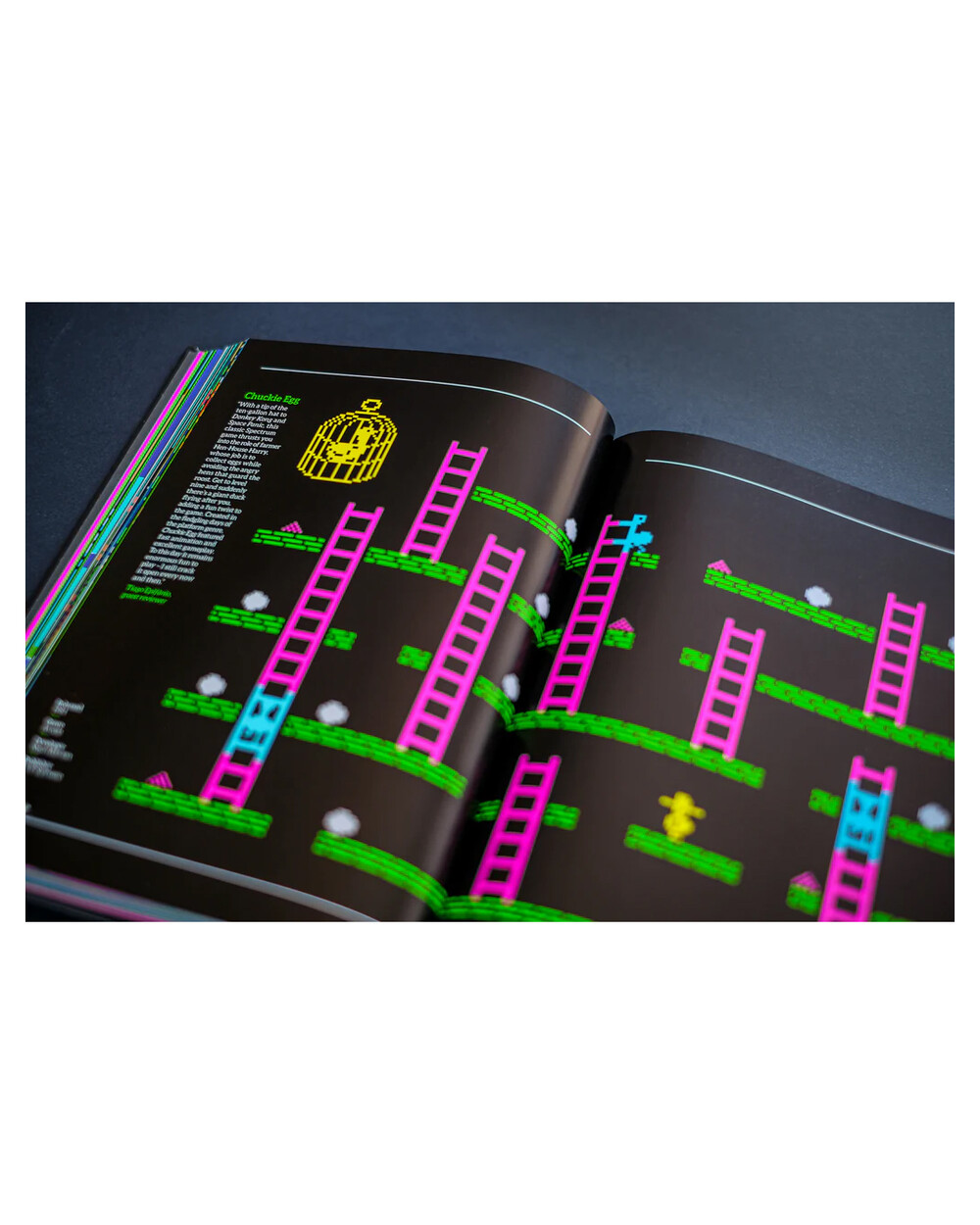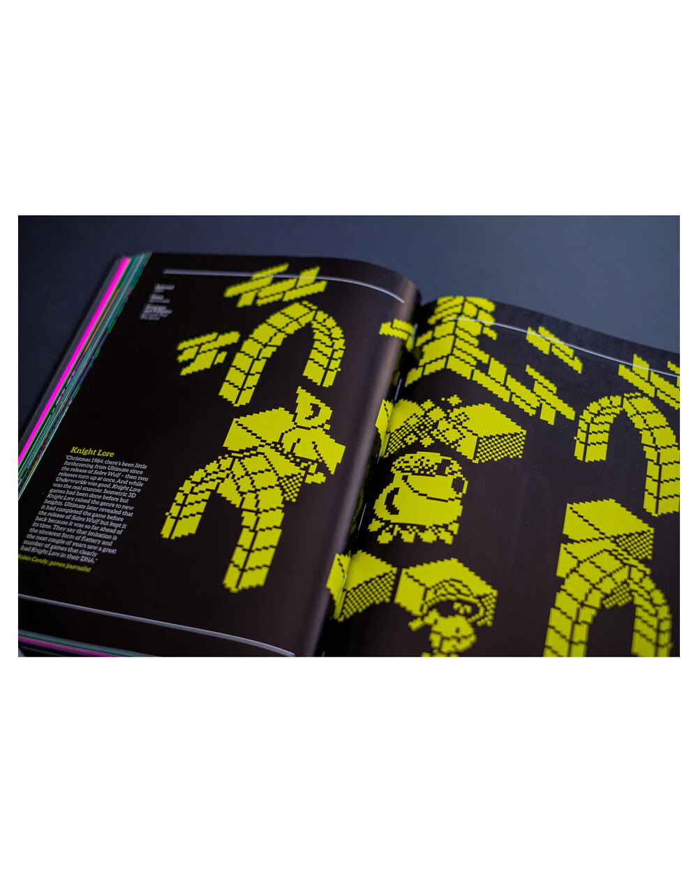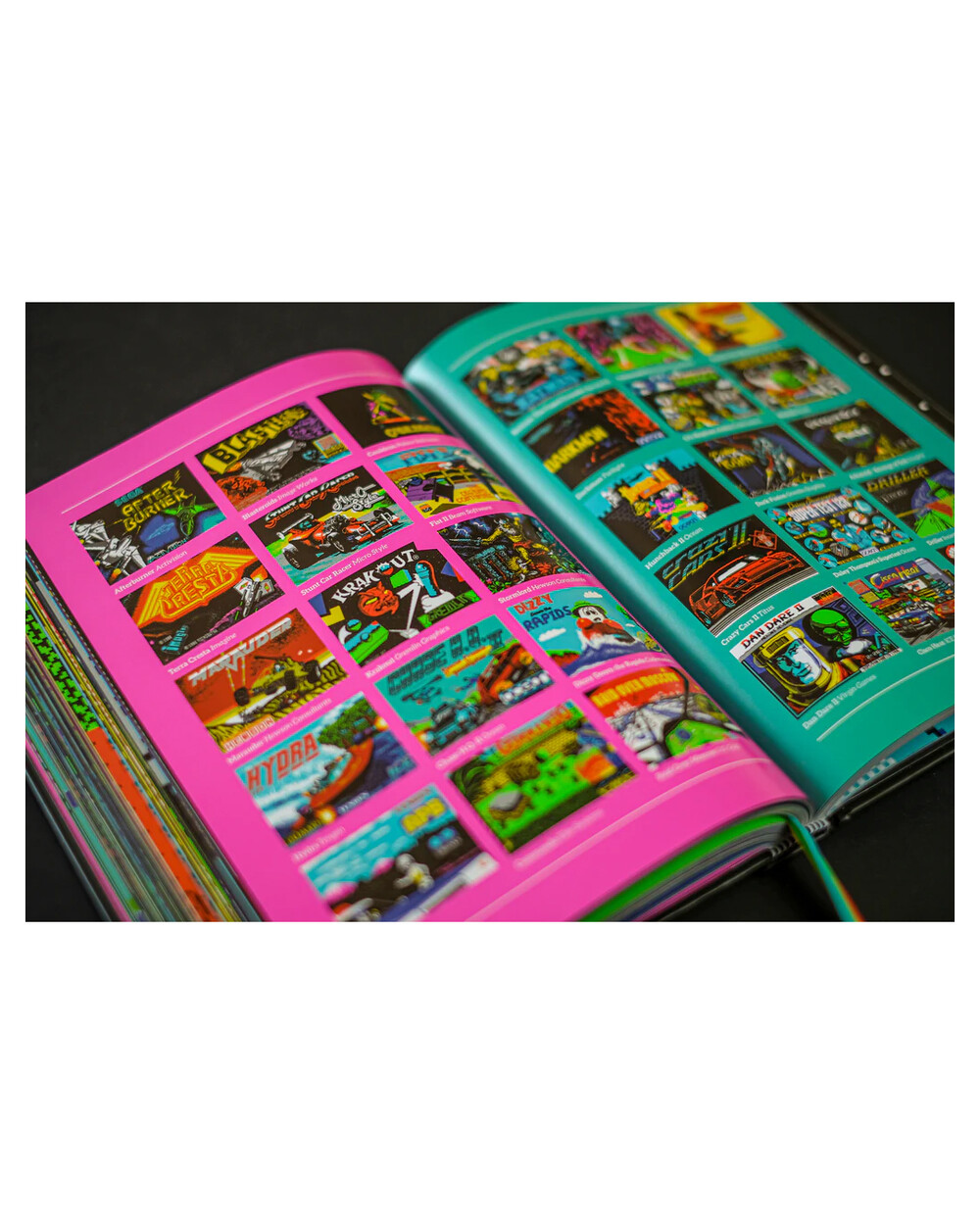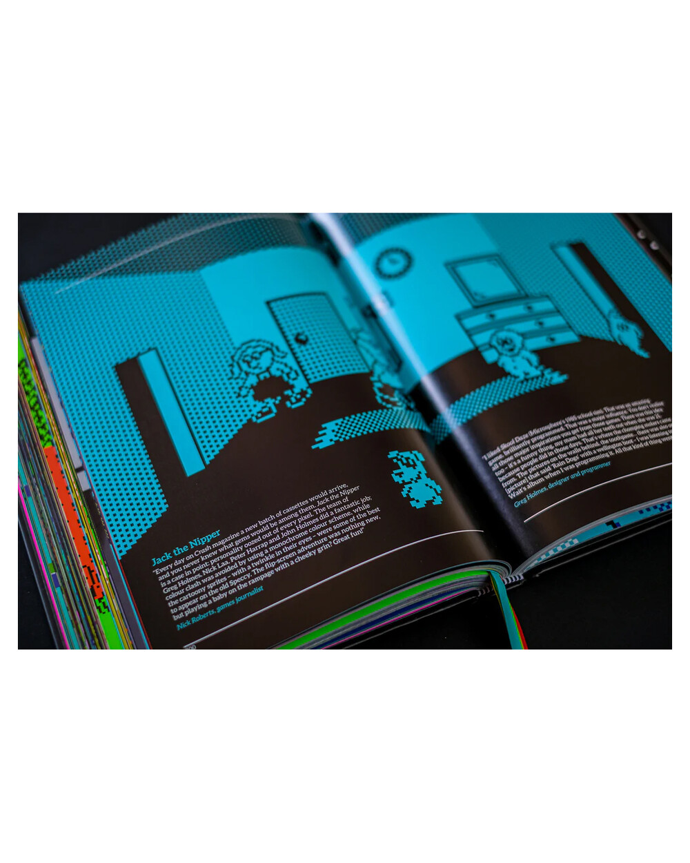 ZX 스펙트럼의 ‘그 시절’ 감성을 한 권에 압축한 시각 자료. The Hobbit, Hungry Horace, Psion’s Flight Simulation부터 Manic Miner, Harrier Attack, Elite, Jetpac, Deus Ex Machina, The Lords of Midnight, Knight Lore, Head Over Heels까지 100편+ 대표작을 로딩 화면·아이코닉 스크린샷으로 풀페이지 인쇄해 담았습니다. 스펙트럼 팔레트의 쨍한 맛을 살리기 위해 형광 잉크(Fluorescent ink)와 엣지 투 엣지 리소가 아닌 고해상도 석판(lithographic) 인쇄를 적용, 당시의 색감·모아레까지 ‘그대로’ 보여주는 레트로 아트북입니다.
