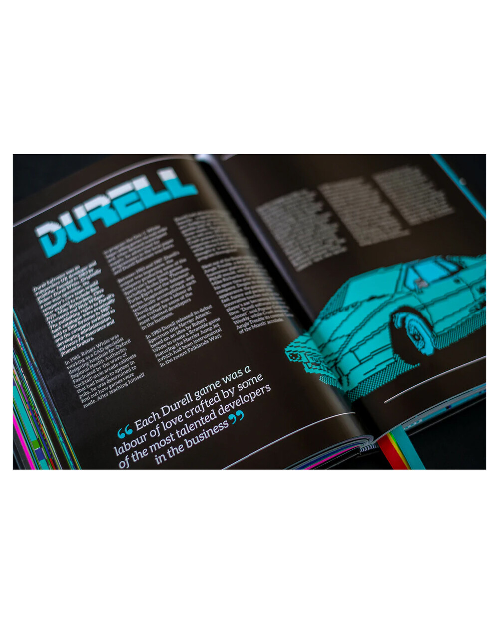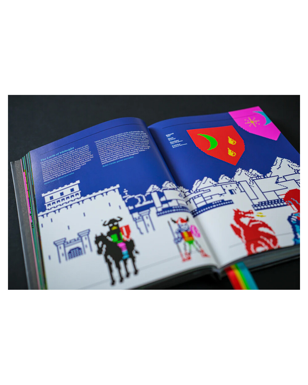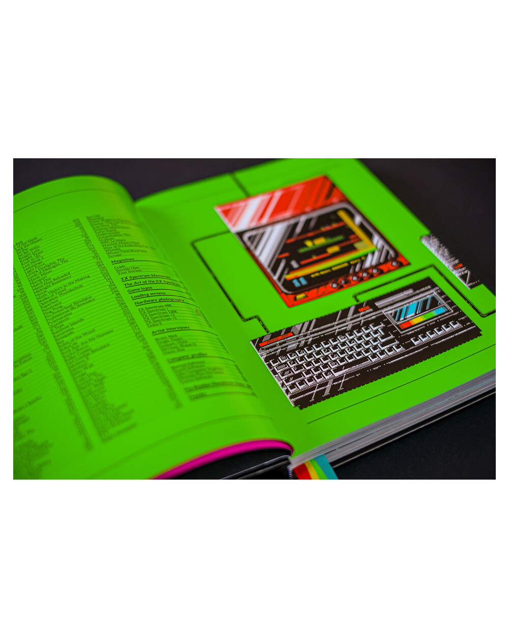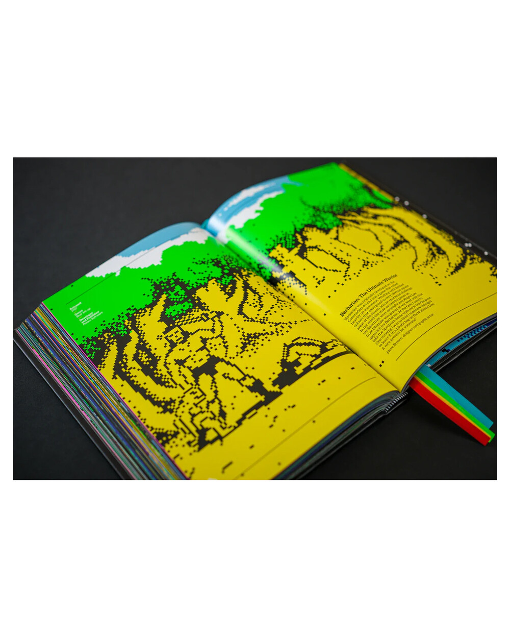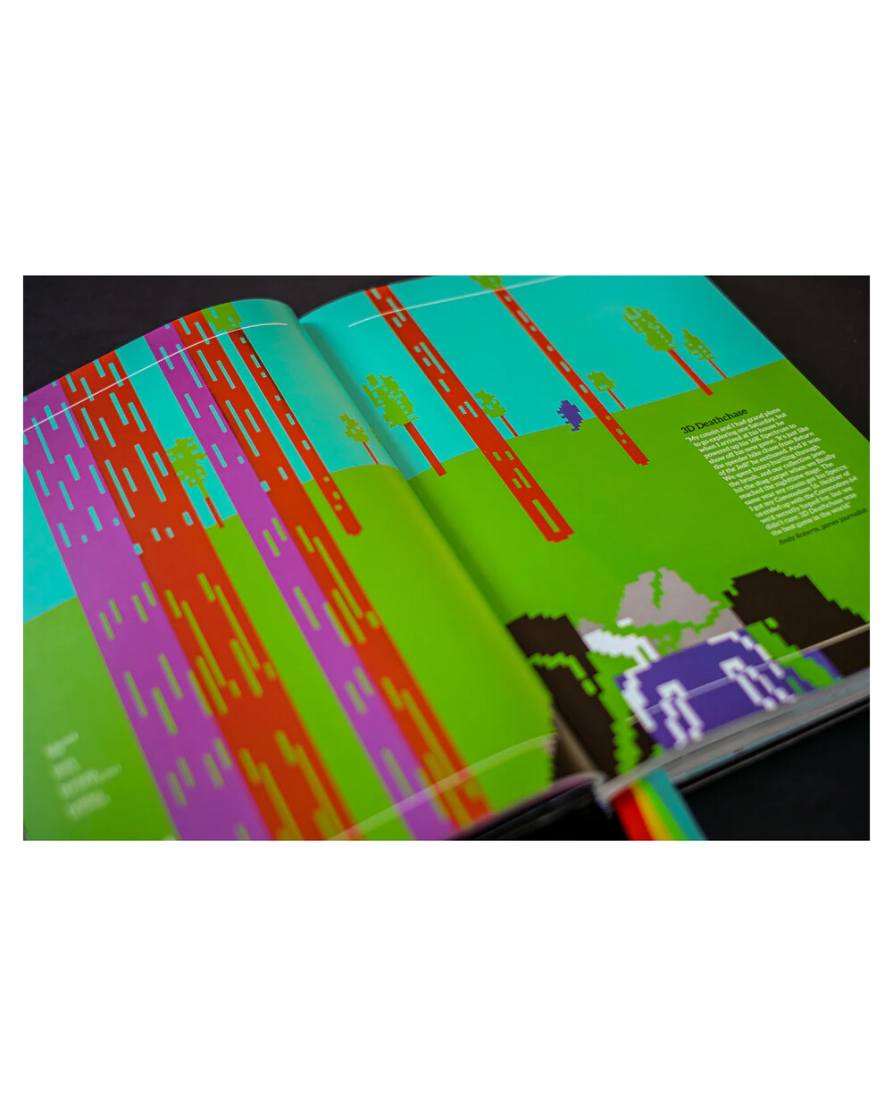 ZX 스펙트럼의 ‘그 시절’ 감성을 한 권에 압축한 시각 자료. The Hobbit, Hungry Horace, Psion’s Flight Simulation부터 Manic Miner, Harrier Attack, Elite, Jetpac, Deus Ex Machina, The Lords of Midnight, Knight Lore, Head Over Heels까지 100편+ 대표작을 로딩 화면·아이코닉 스크린샷으로 풀페이지 인쇄해 담았습니다. 스펙트럼 팔레트의 쨍한 맛을 살리기 위해 형광 잉크(Fluorescent ink)와 엣지 투 엣지 리소가 아닌 고해상도 석판(lithographic) 인쇄를 적용, 당시의 색감·모아레까지 ‘그대로’ 보여주는 레트로 아트북입니다.