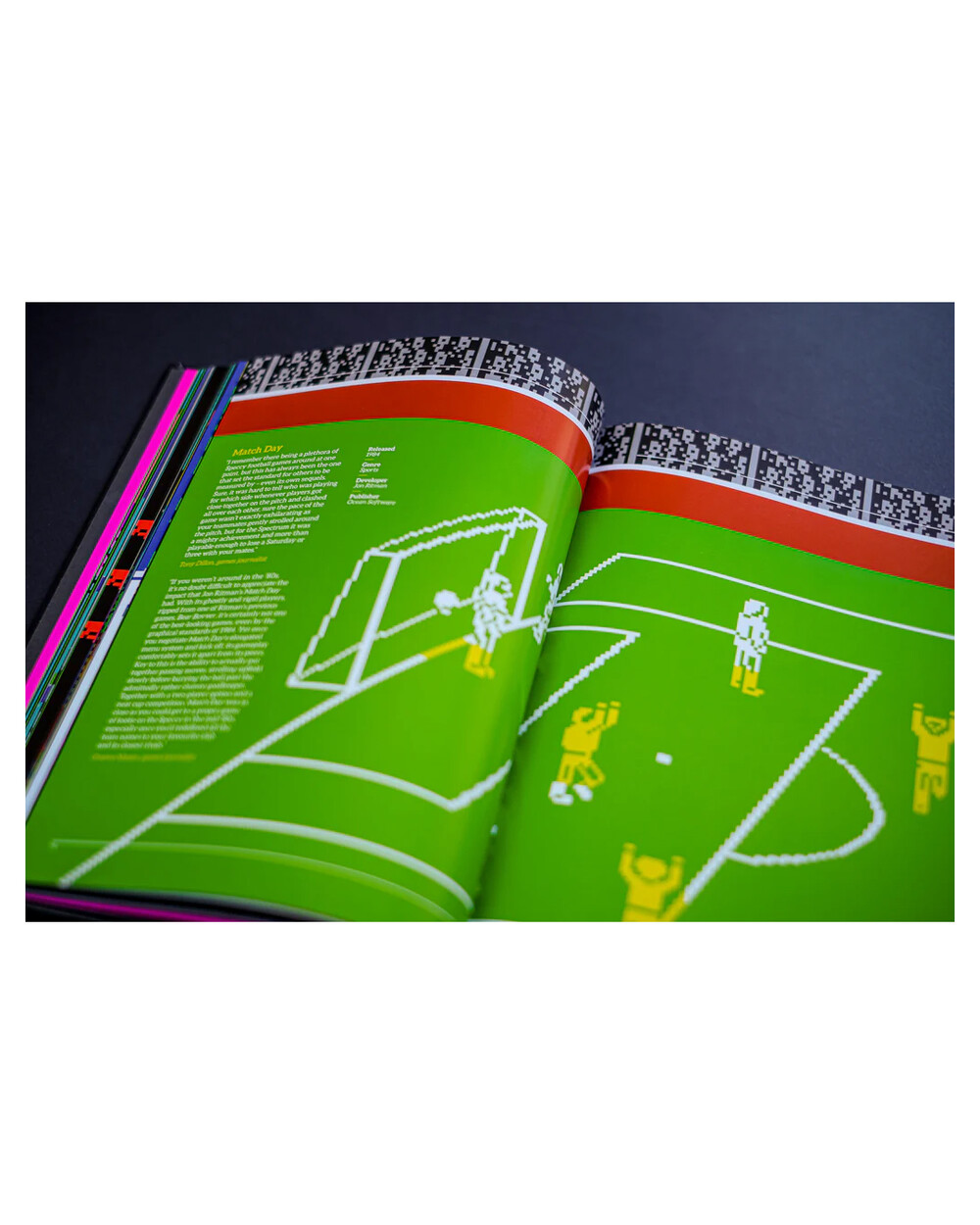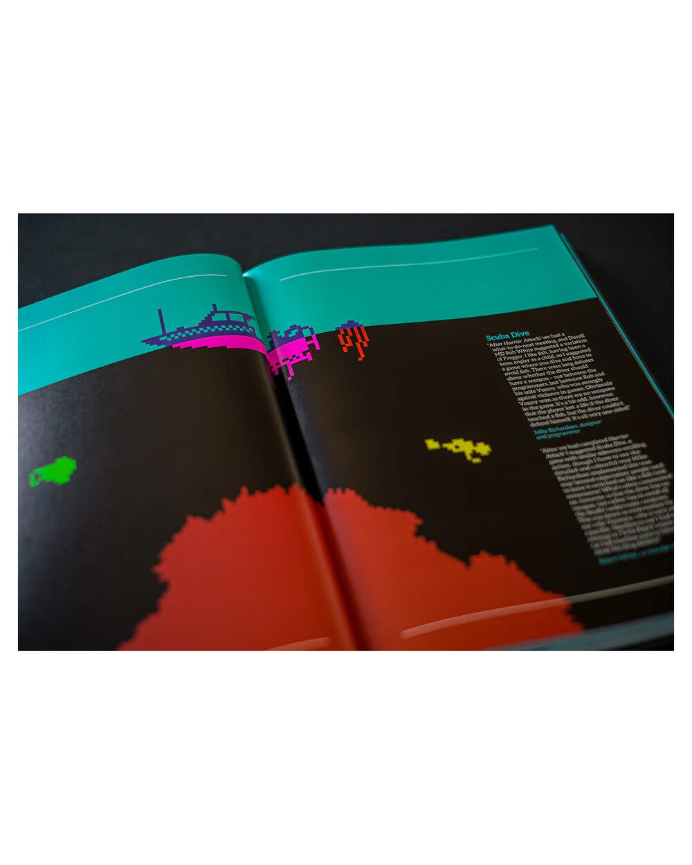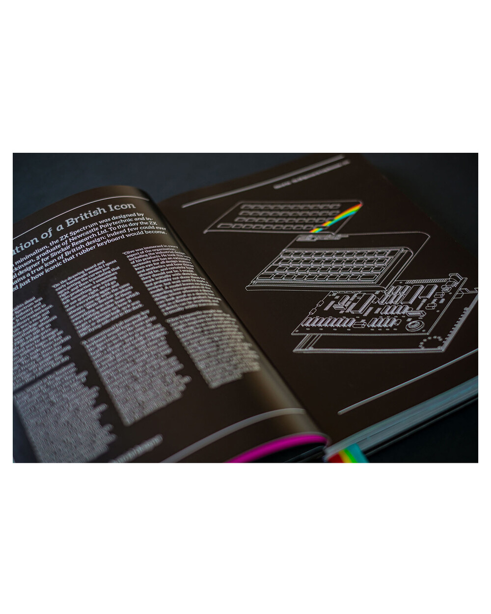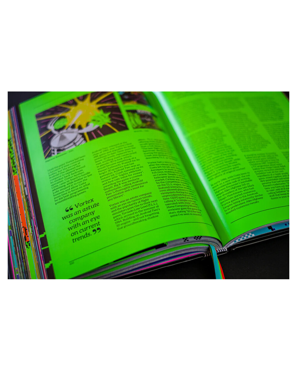 ZX 스펙트럼의 ‘그 시절’ 감성을 한 권에 압축한 시각 자료. The Hobbit, Hungry Horace, Psion’s Flight Simulation부터 Manic Miner, Harrier Attack, Elite, Jetpac, Deus Ex Machina, The Lords of Midnight, Knight Lore, Head Over Heels까지 100편+ 대표작을 로딩 화면·아이코닉 스크린샷으로 풀페이지 인쇄해 담았습니다. 스펙트럼 팔레트의 쨍한 맛을 살리기 위해 형광 잉크(Fluorescent ink)와 엣지 투 엣지 리소가 아닌 고해상도 석판(lithographic) 인쇄를 적용, 당시의 색감·모아레까지 ‘그대로’ 보여주는 레트로 아트북입니다.
