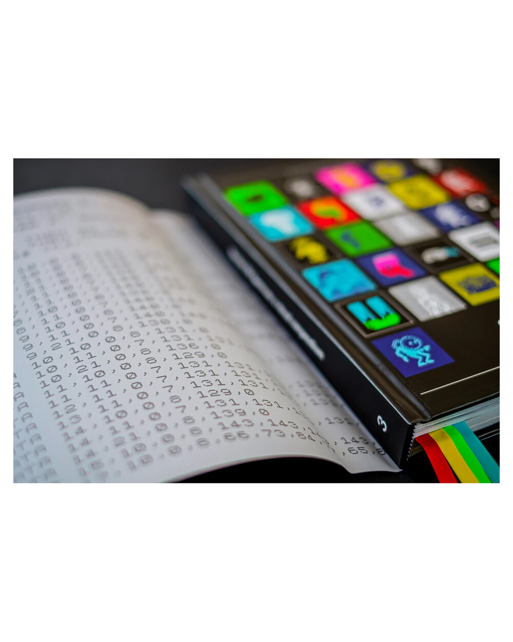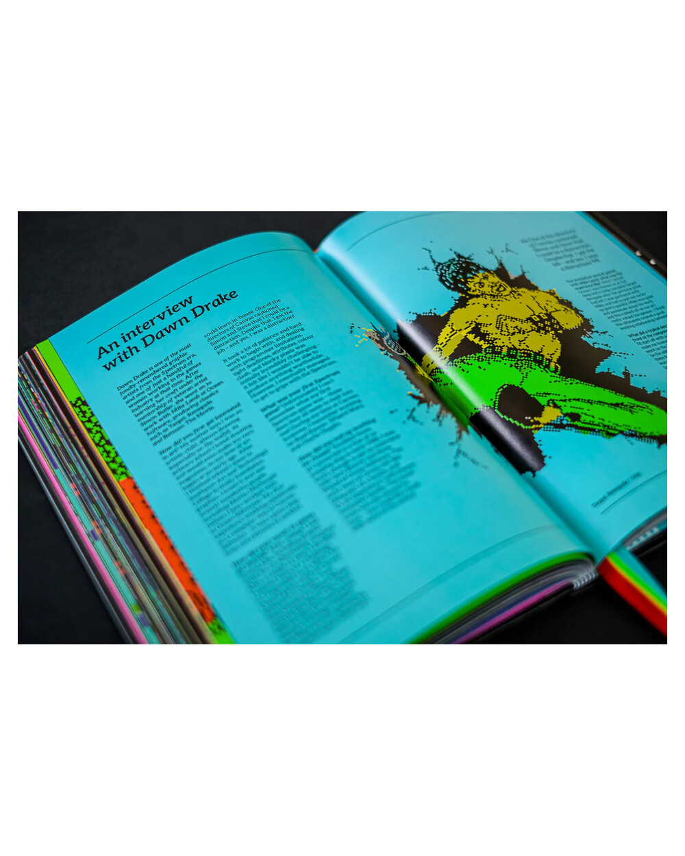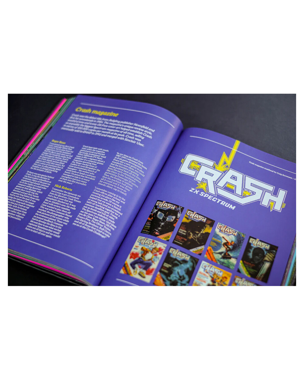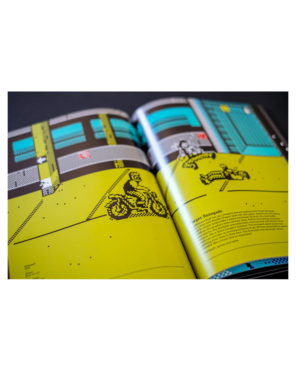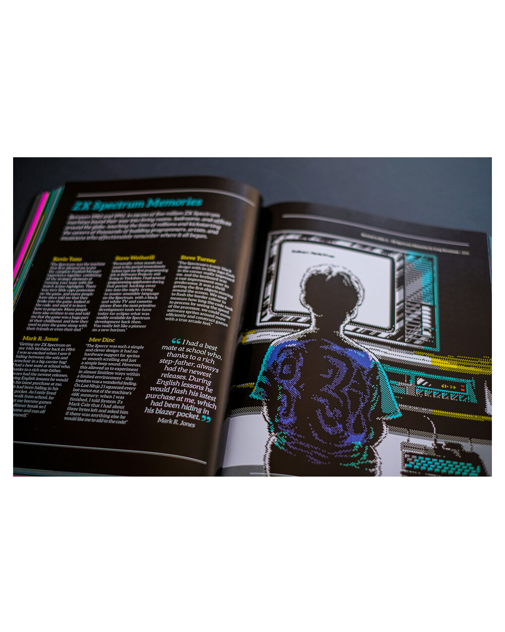 ZX 스펙트럼의 ‘그 시절’ 감성을 한 권에 압축한 시각 자료. The Hobbit, Hungry Horace, Psion’s Flight Simulation부터 Manic Miner, Harrier Attack, Elite, Jetpac, Deus Ex Machina, The Lords of Midnight, Knight Lore, Head Over Heels까지 100편+ 대표작을 로딩 화면·아이코닉 스크린샷으로 풀페이지 인쇄해 담았습니다. 스펙트럼 팔레트의 쨍한 맛을 살리기 위해 형광 잉크(Fluorescent ink)와 엣지 투 엣지 리소가 아닌 고해상도 석판(lithographic) 인쇄를 적용, 당시의 색감·모아레까지 ‘그대로’ 보여주는 레트로 아트북입니다.