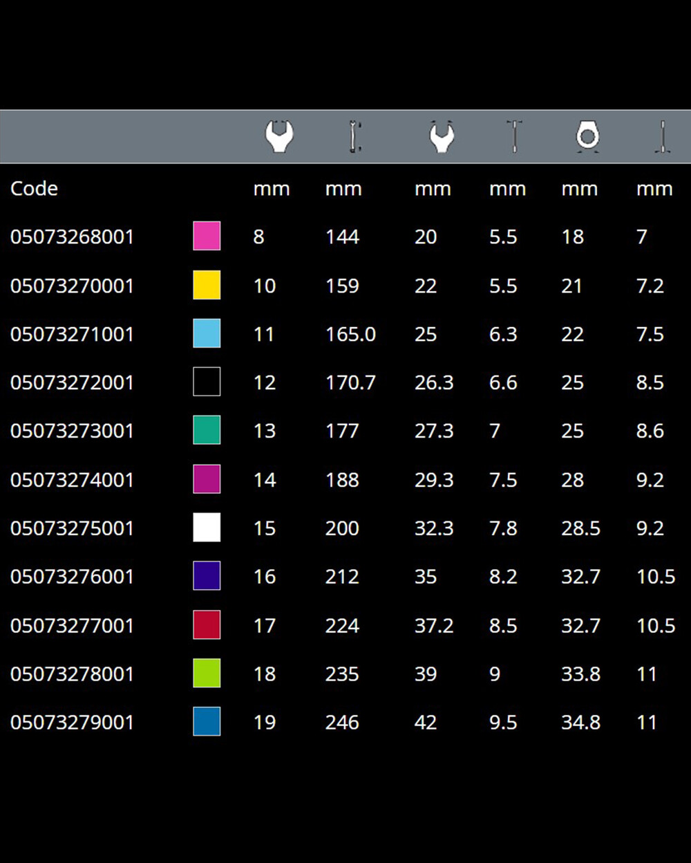 +사이즈에 따른 색상 코딩으로 손쉽게 도구를 찾을 수 있습니다.