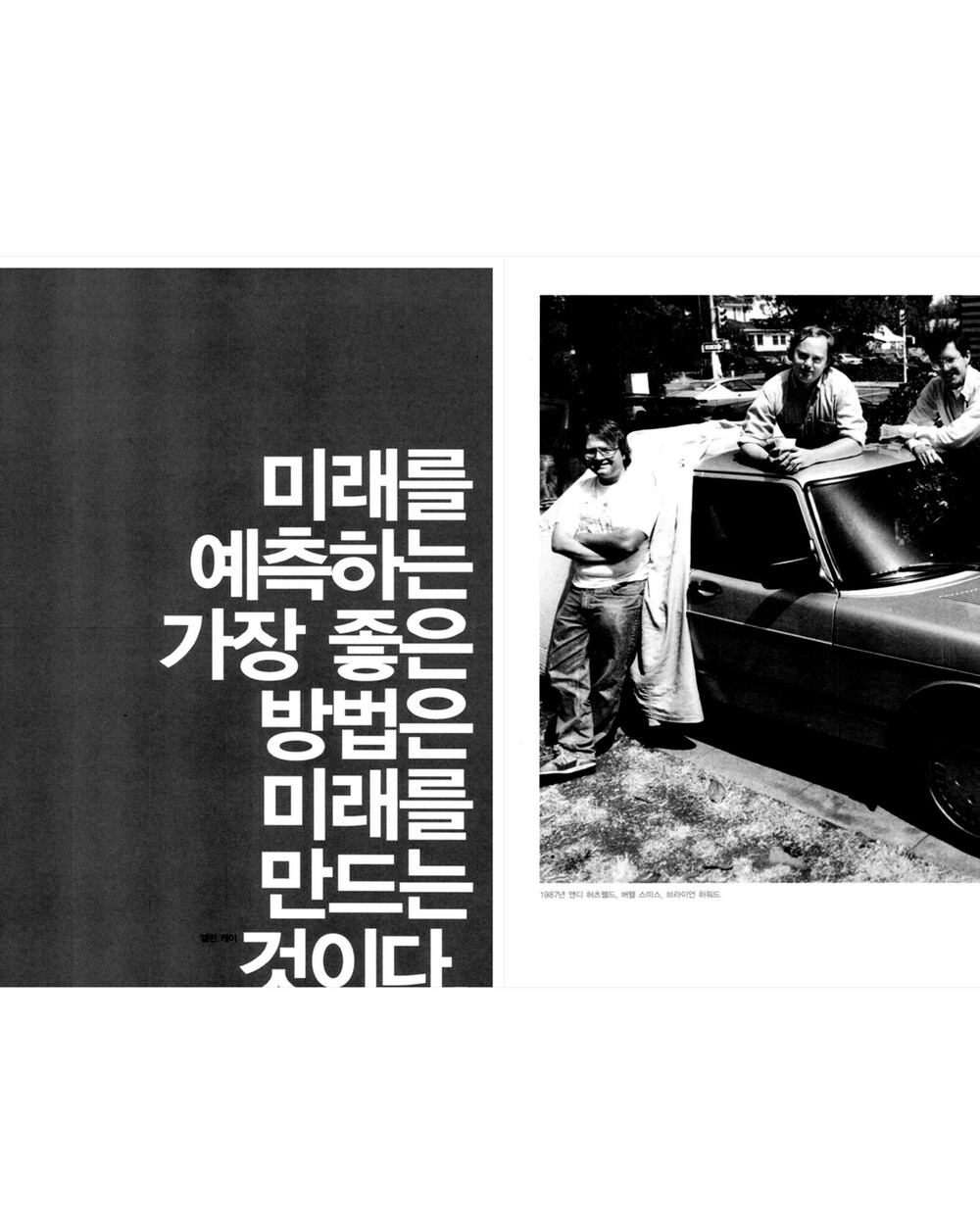 “앤디 씨에게 좋은 소식을 가져왔지.” 잡스가 말했다. “지금부터 맥 팀에서 일해. 갑시다. 새 책상에 데려다 주지.”“이야, 정말 좋은 소식이네요.” 나는 얼른 대답했다. “여기에서 하던 일을 끝내려면 하루나 이틀 더 필요한데요. 그러면 월요일부터 맥 팀에서 일할 수 있겠네요.”“무슨 일을 하는데? 매킨토시 프로젝트에서 일하는 것보다 더 중요한가?”“음, 애플 Ⅱ용 새 OS인 도스 4.0을 막 시작했거든요. 다른 사람이 인계 받을 수 있게 잘 다듬어 놓고 싶은데요.”“아니, 그 일은 시간 낭비야. 애플 Ⅱ에 관심 가지는 사람이 어디 있다고. 애플 Ⅱ는 몇 년 안에 죽을 거야. 앤디 씨가 만드는 OS는 완성되기도 전에 쓸모없게 될 걸. 매킨토시가 애플의 미래고 지금 당장 시작해야 해.”그 말을 하고 잡스는 내 책상으로 오더니 애플 Ⅱ 전원 코드를 찾아 확 잡아당겨 소켓에서 뽑아버렸고 컴퓨터 전원이 꺼지면서 내가 짜던 코드는 사라져 버렸다. 잡스는 모니터 플러그를 뽑아 컴퓨터 위에 올려놓고 나서 둘 다 들고 걸어 나가기 시작했다. “갑시다. 새 책상에 데려다 주지.”