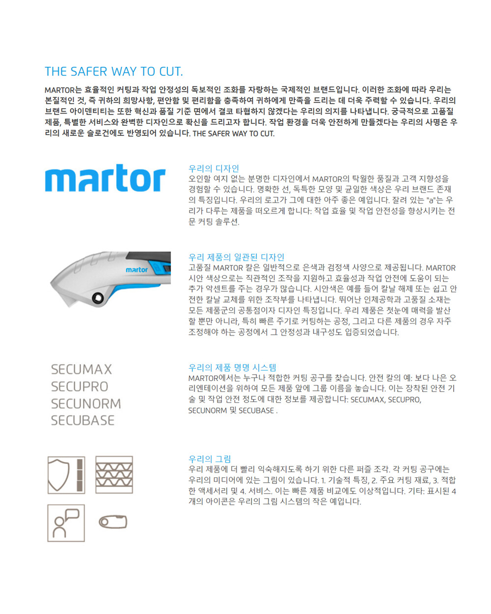 Martor는 80년 동안 끊임없는 연구 개발을 통해 안전칼 분야에서 최고가 되기 위해 노력하는 독일 Solingen에 본사를 둔 회사입니다.