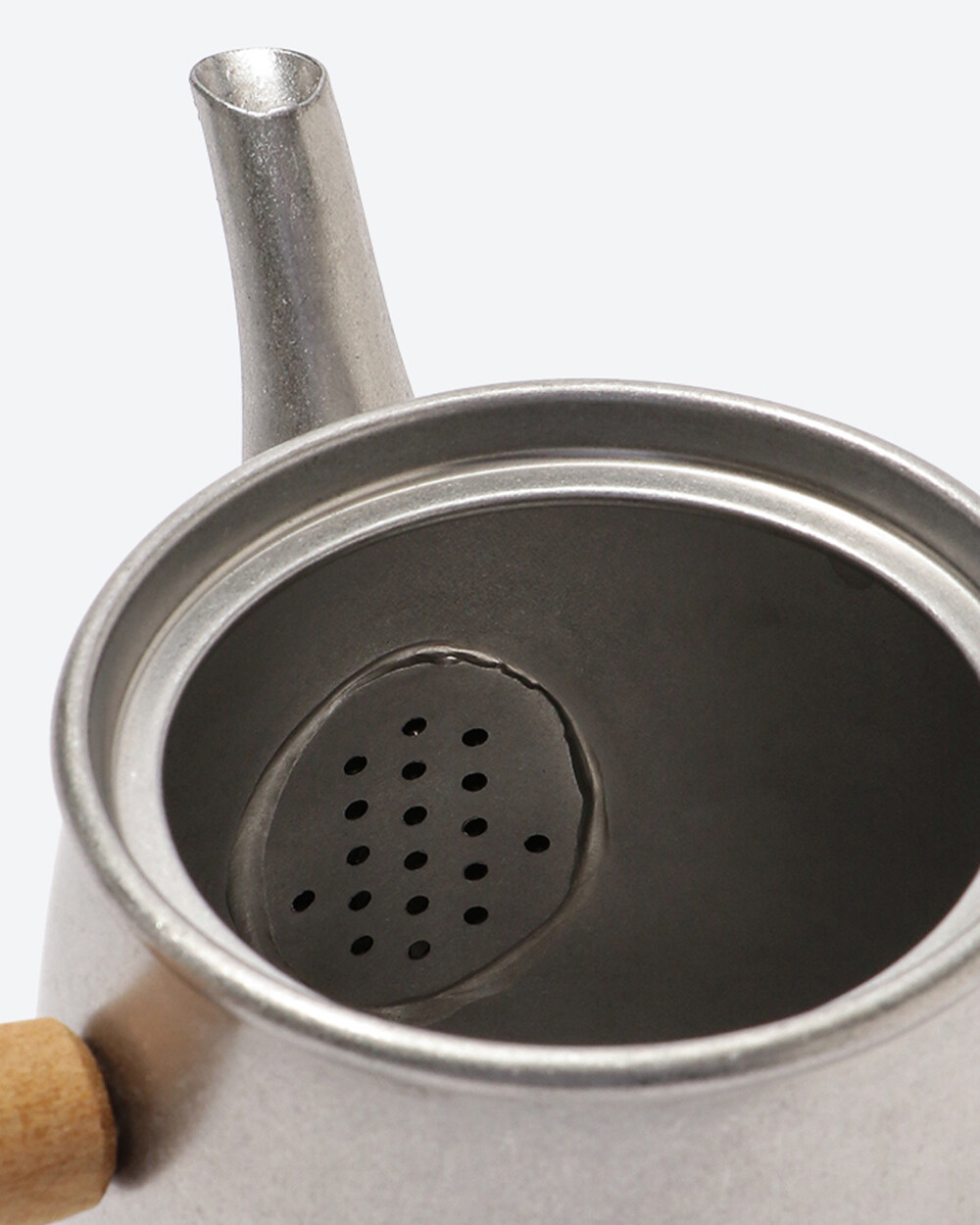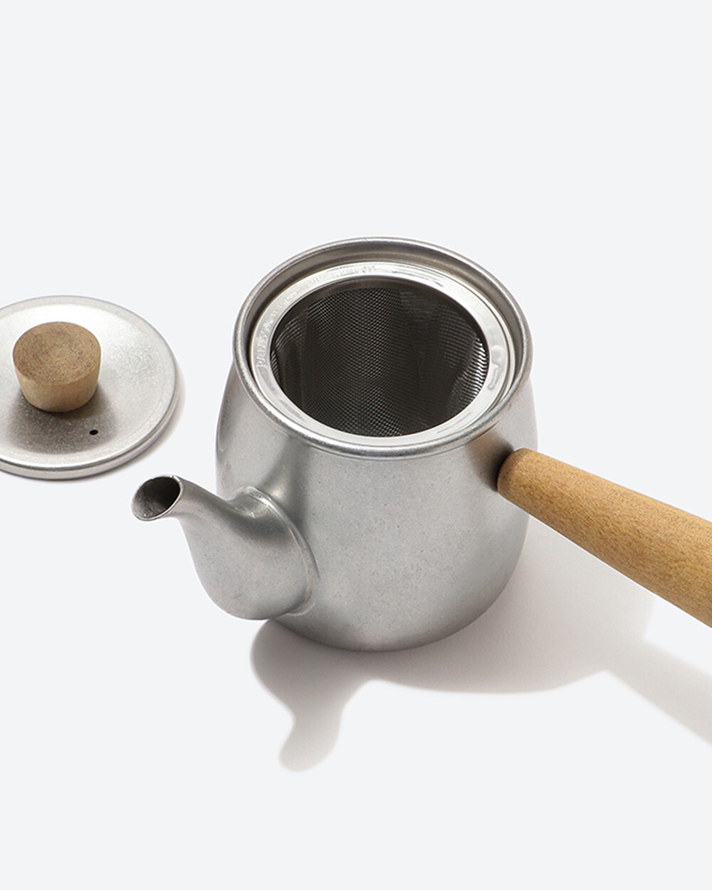 일본 미야자키제작소의 스테인리스 티포트. 색·냄새 배임이 적은 18-8 스테인리스 본체에 미세 차망이 기본 포함되어 녹차부터 보리차까지 깔끔하게 우리기 좋습니다. 손잡이·뚜껑 손잡이는 천연목으로 마감해 뜨겁지 않고 그립감이 편하며 특유의 스톤워시 가공으로 매트한 질감이 특징입니다.