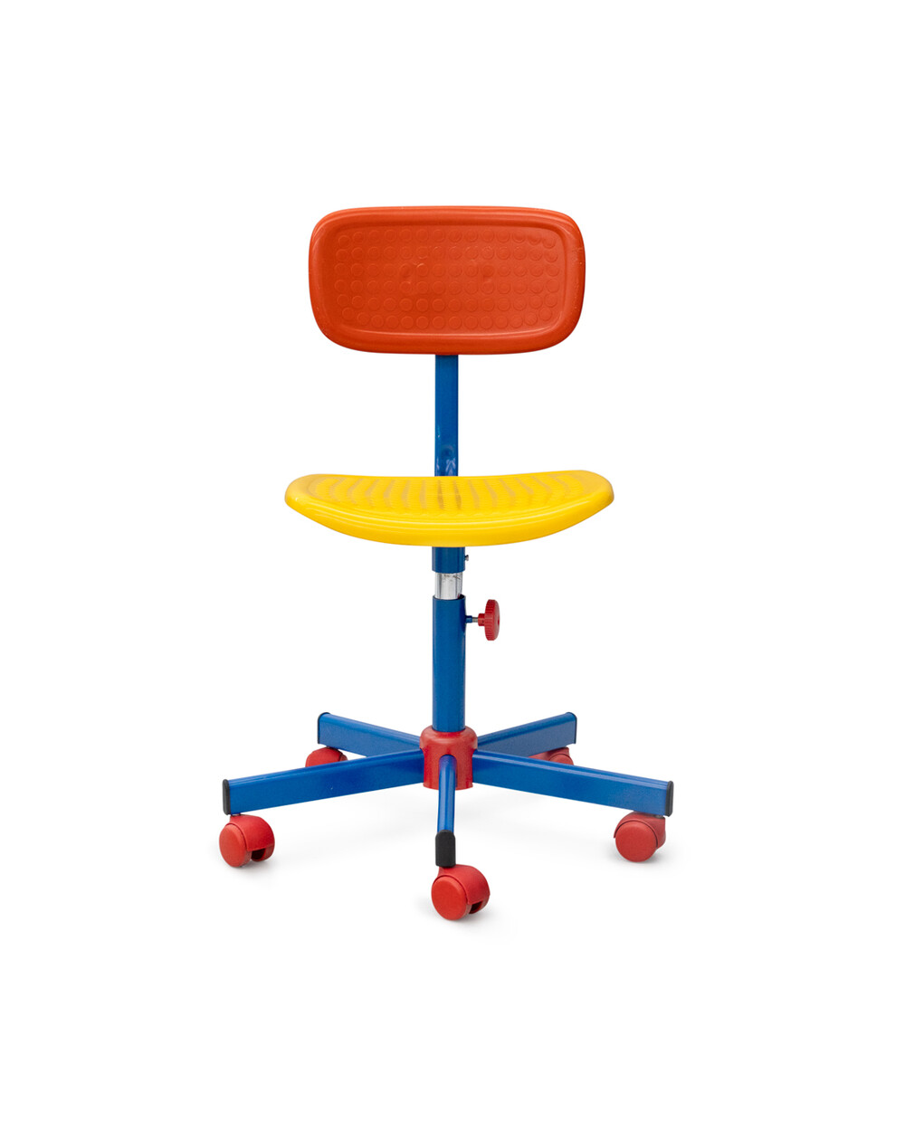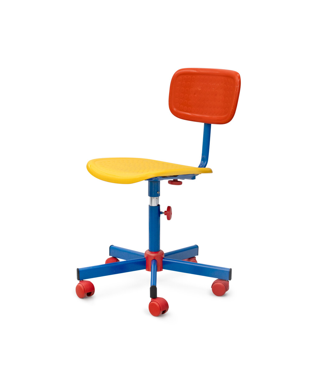1980년대에 Knut & Marianne Hagberg가 이케아를 위해 디자인한 어린이용 사무실 의자. 금속 다리와 플라스틱 시트로 구성되어 있으며 인상적인 멤피스 밀라노 컬러로 제작되었습니다.
