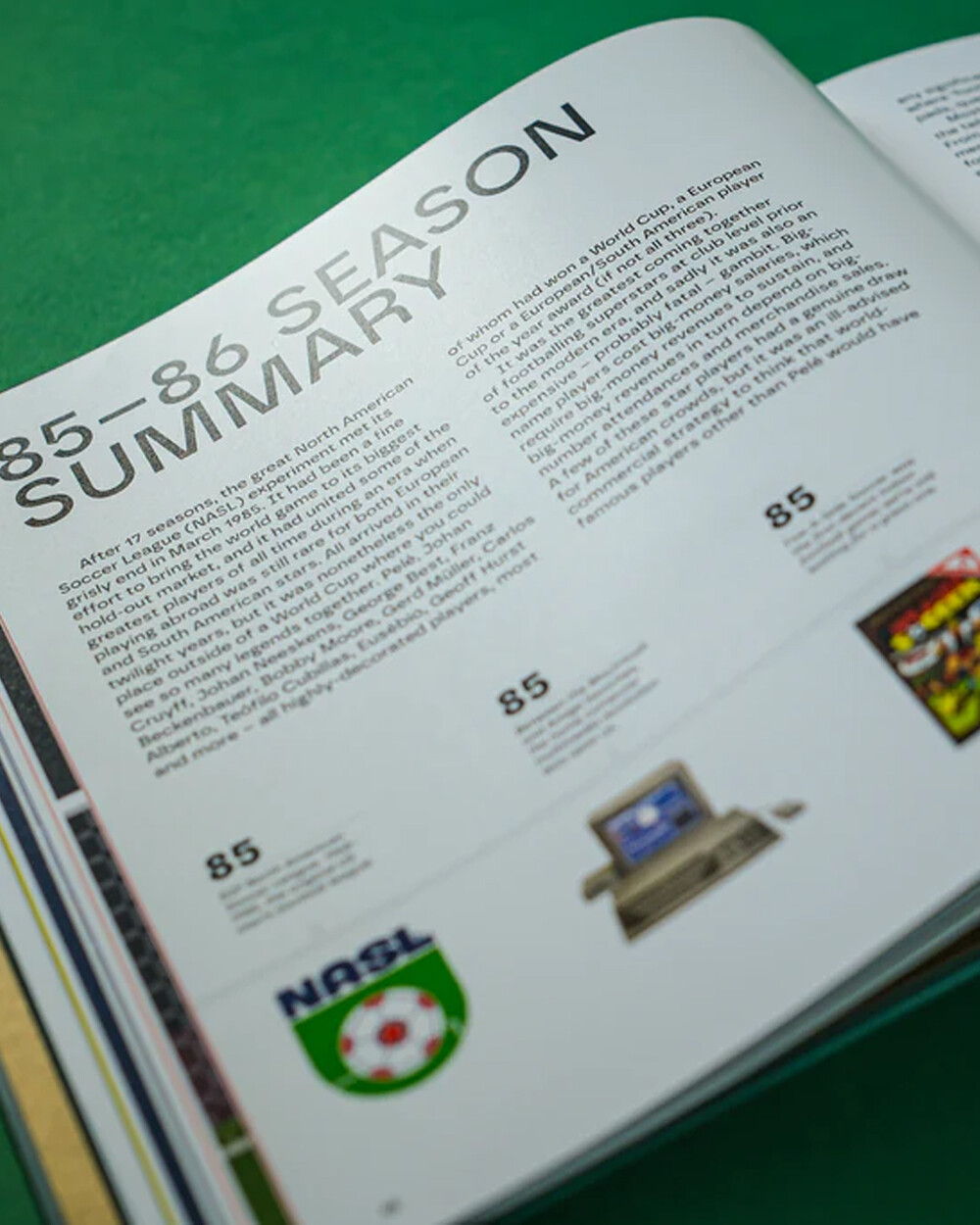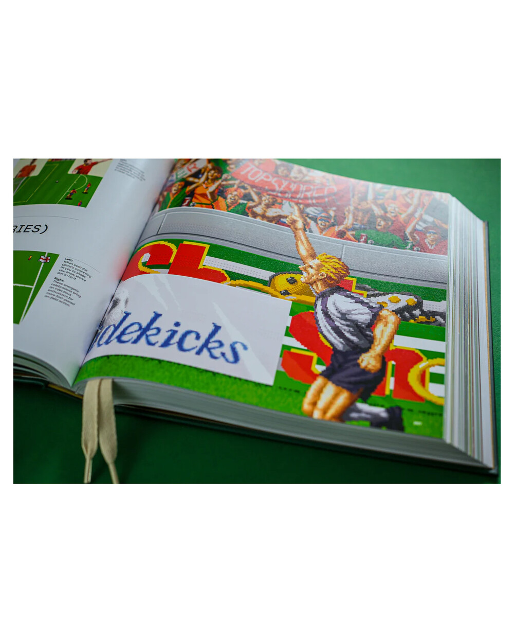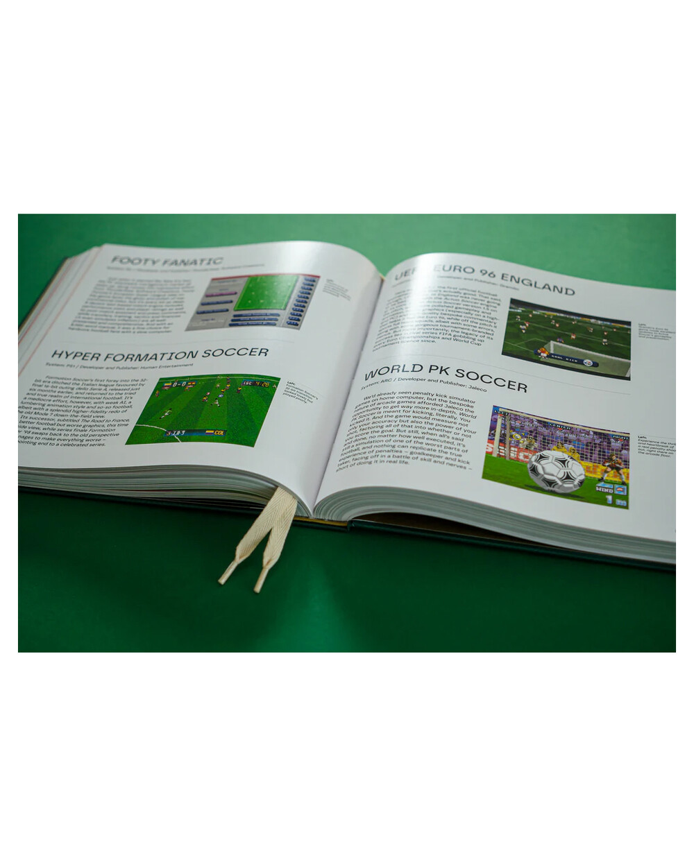 전설적 해설가 클라이브 틸즈리(Clive Tyldesley) 의 서문, 수백 장에 달하는 정교한 스크린샷, 그리고 선구적 축구 게임 개발자들과의 13편의 인터뷰가 수록되어 있습니다. 또한 PES(위닝일레븐) 가 선수 실명을 독특하게 변주하던 관습을 기념하는 제임스 레이놀즈의 ‘Unlicensed FC’ 일러스트 시리즈와, 8-Bit Football 팀의 절묘하게 조율된 픽셀 아트도 함께 담았습니다. 커버하는 플랫폼 역시 Atari 2600과 C64부터 Colecovision, Amiga 라인, PlayStation 1, Xbox 360, 아케이드 등 다양한 시스템을 다루고 있습니다.