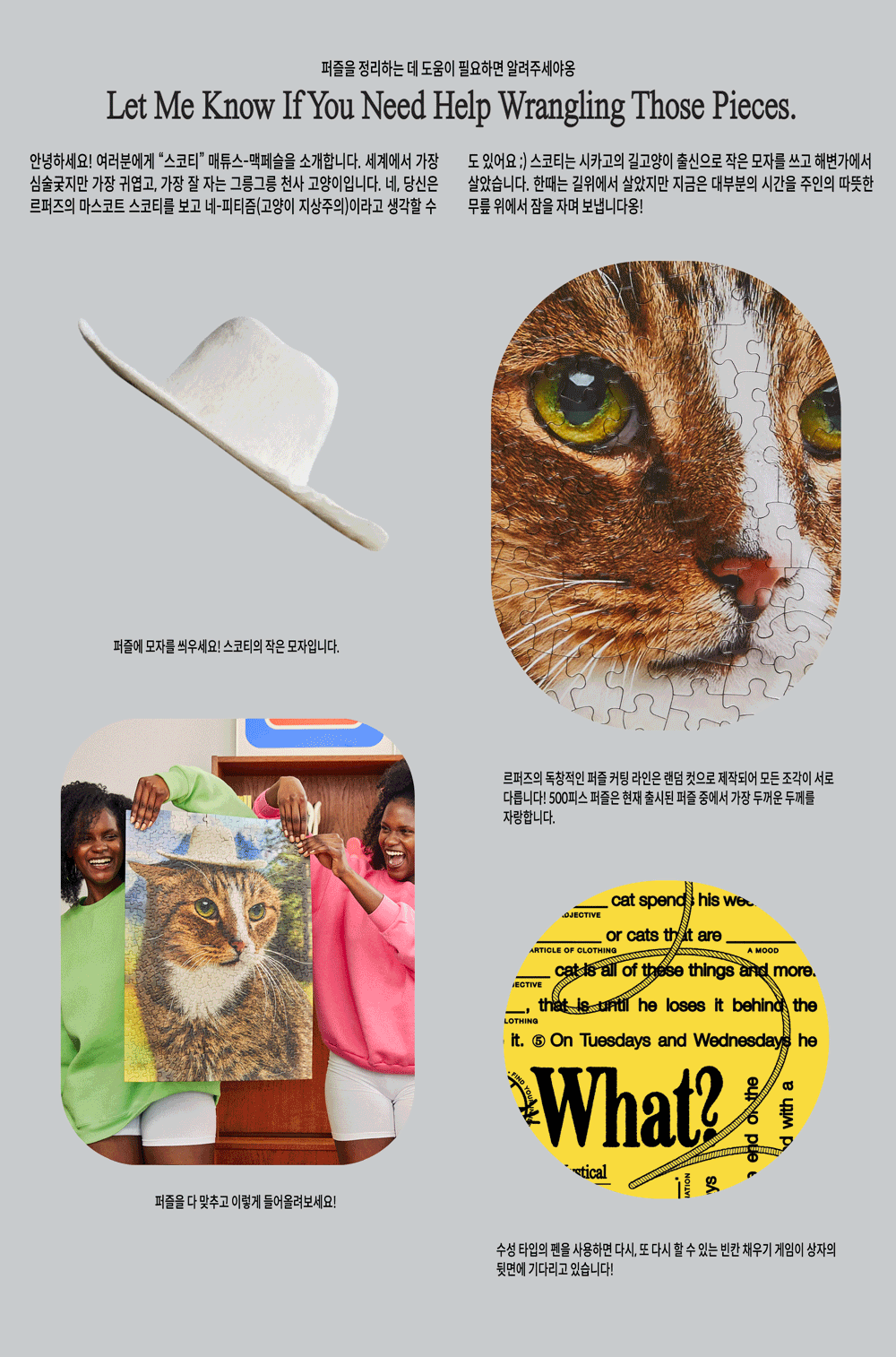 헬로 냥친구! 하우디 포트너는 고양이 퍼즐에 대한 르퍼즈의 찬사입니다. 개친구들도 동의합니다. 이 퍼즐은 한마디로 ‘냐옹’입니다. 심지어 알레르기로부터 자유롭습니다.
