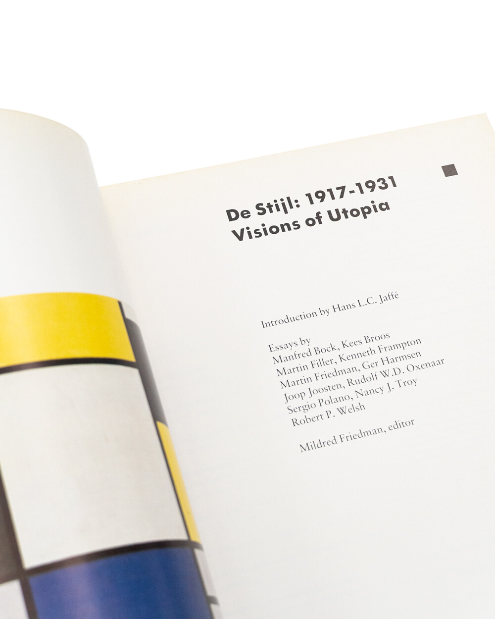 이 책은 1982년 Walker Art Center의 디자인 큐레이터인 Mildred Friedman이 주최한 De Stijl 전시회의 도록으로서 미국과 네덜란드의 공식 수교 200주년을 기념하는 여러 국제 행사 중 하나였습니다. 반 두스부르크(van Dosburg), 오우트(Oud) 등과 같은 데 스틸 거장들의 훌륭한 인용문과 데 스틸에 대한 깊이있는 설명과 사진을 담고 있습니다.